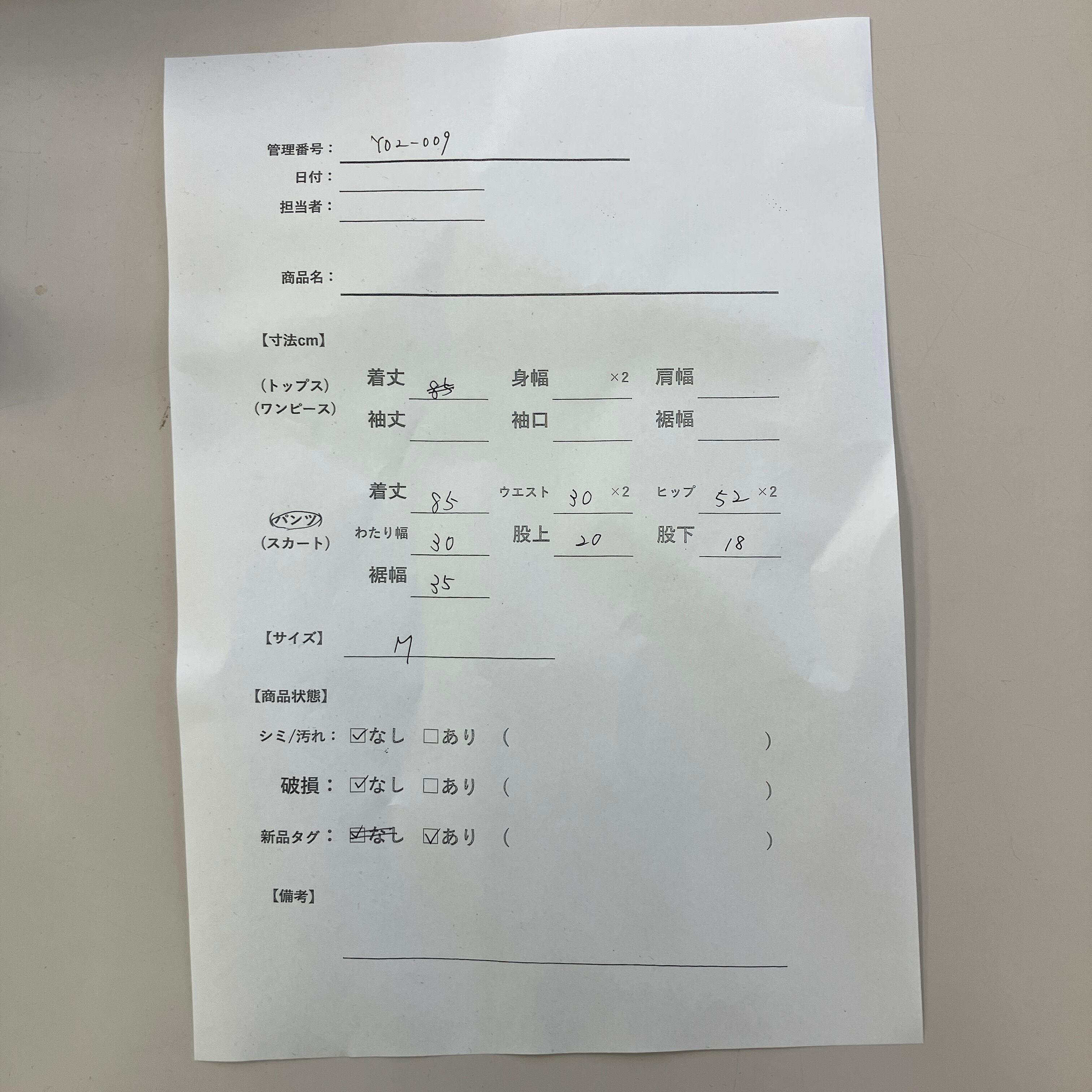 管理番号:Y02-009 #てまいらずアパレル商品一覧