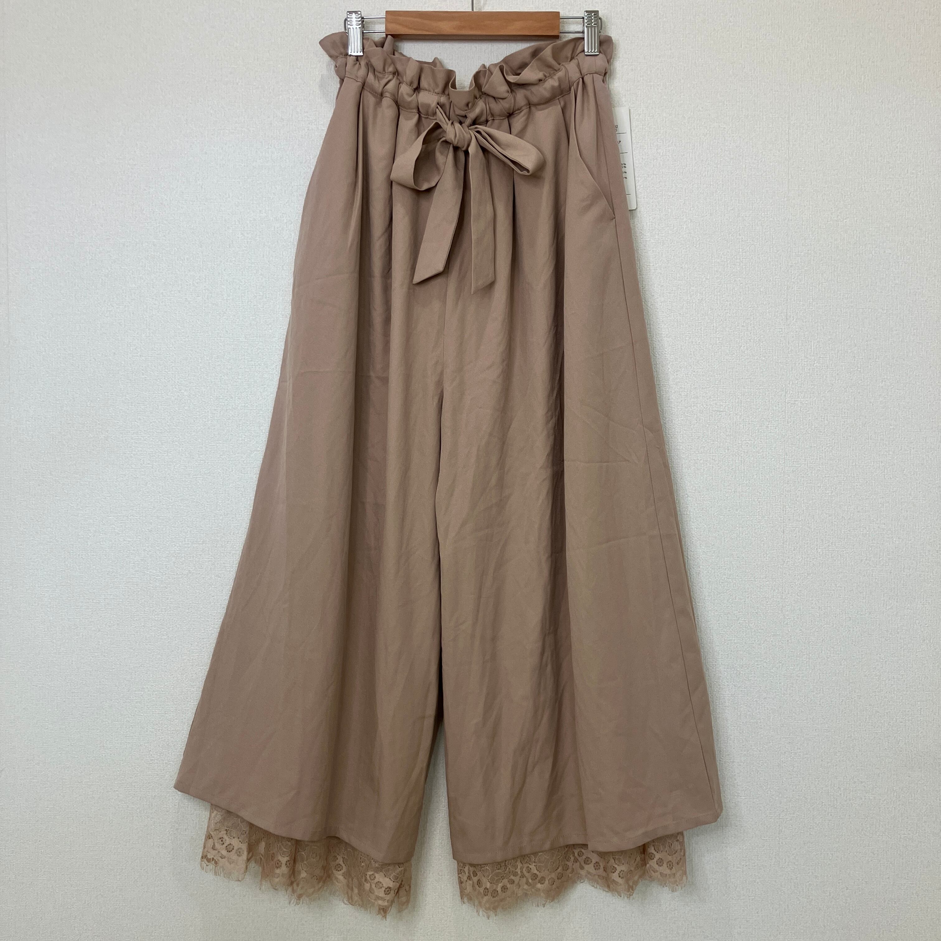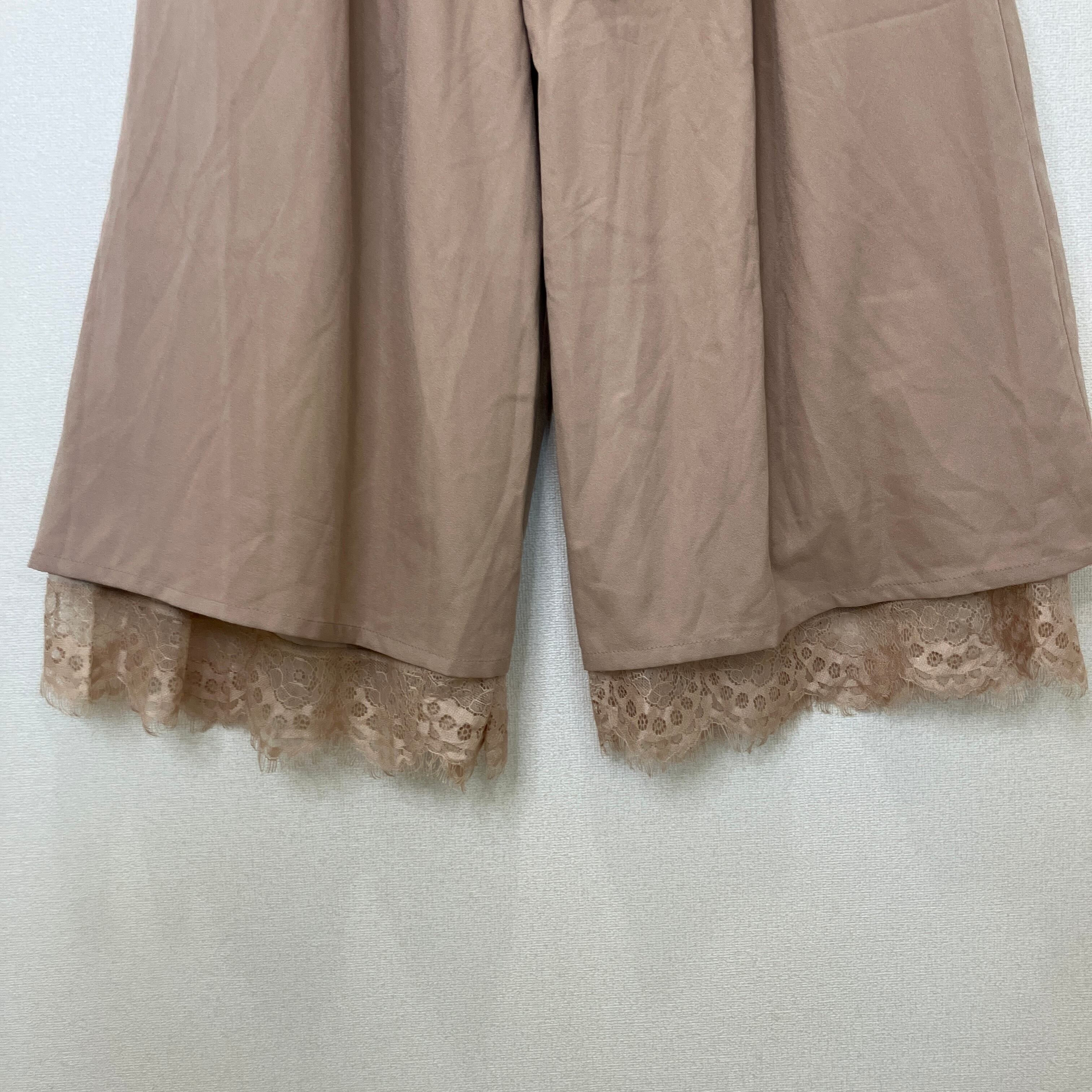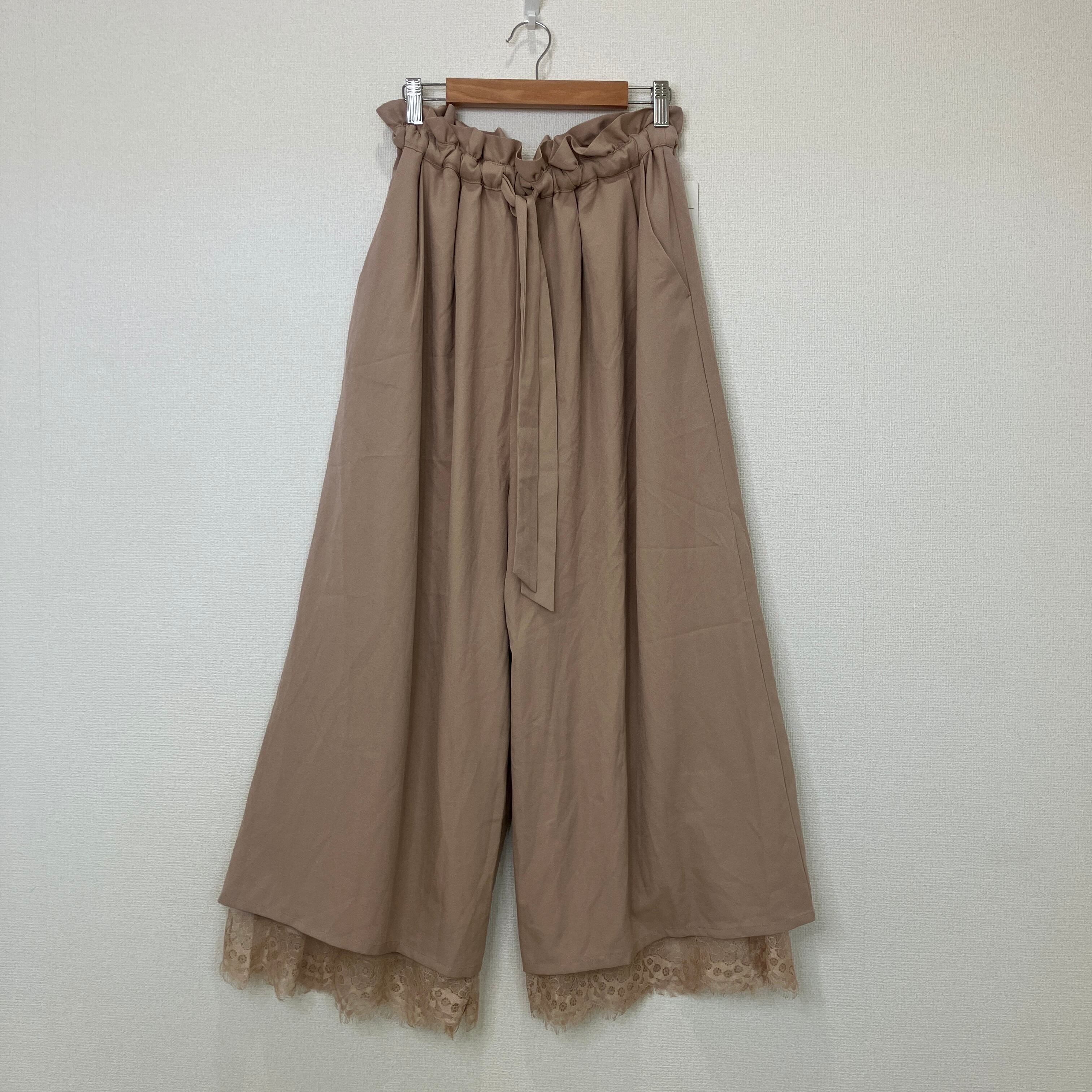 MIIA(ミーア)裾レース ワイドパンツ ガウチョパンツ モカブラウン