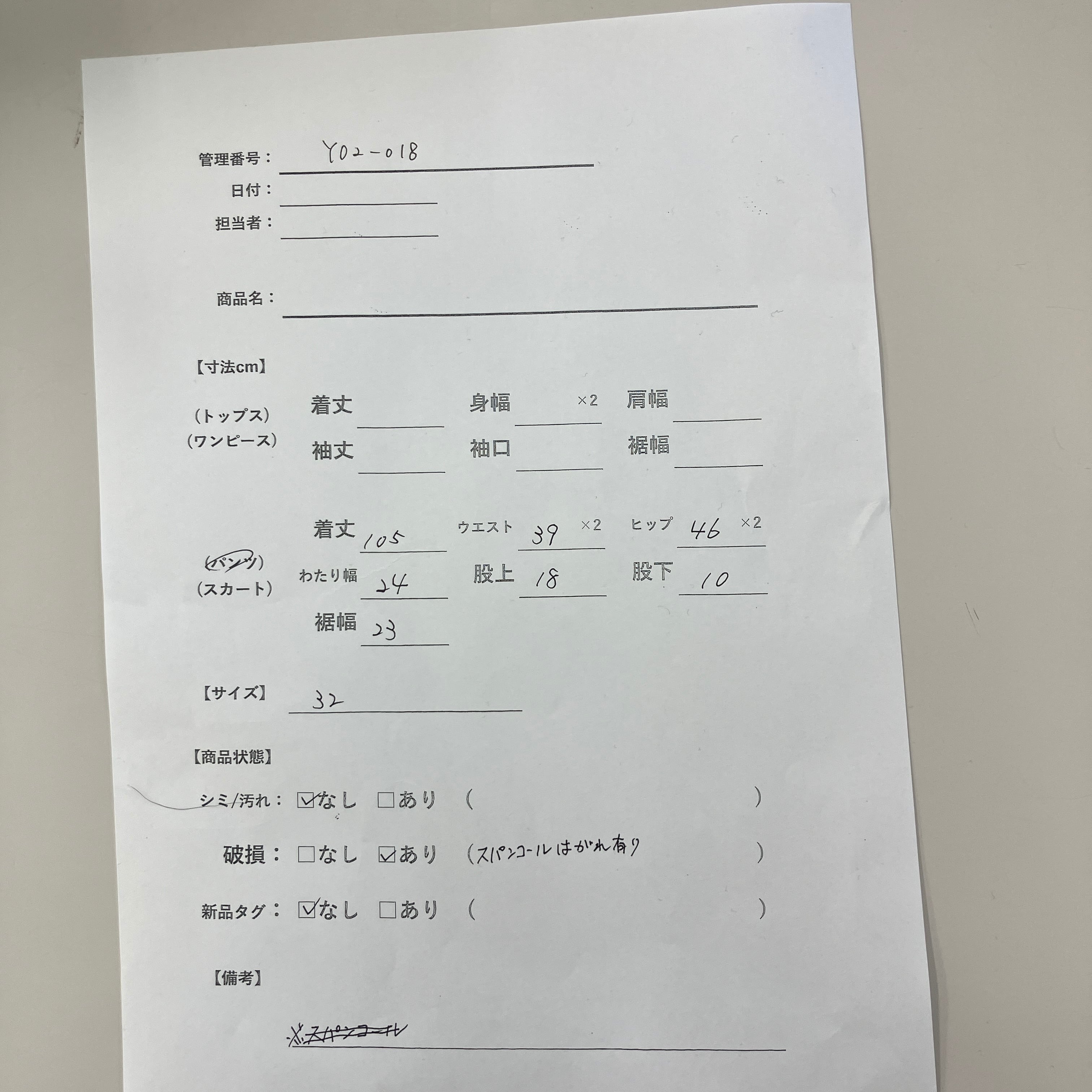 管理番号:Y02-018 #てまいらずアパレル商品一覧