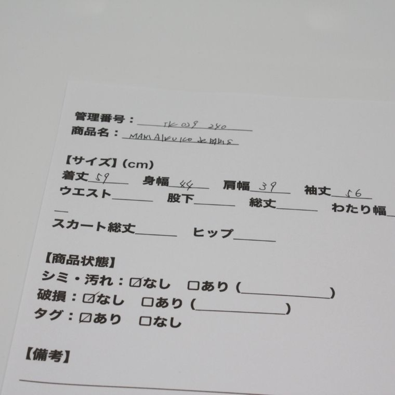※素人採寸のため、多少の誤差はご了承ください。