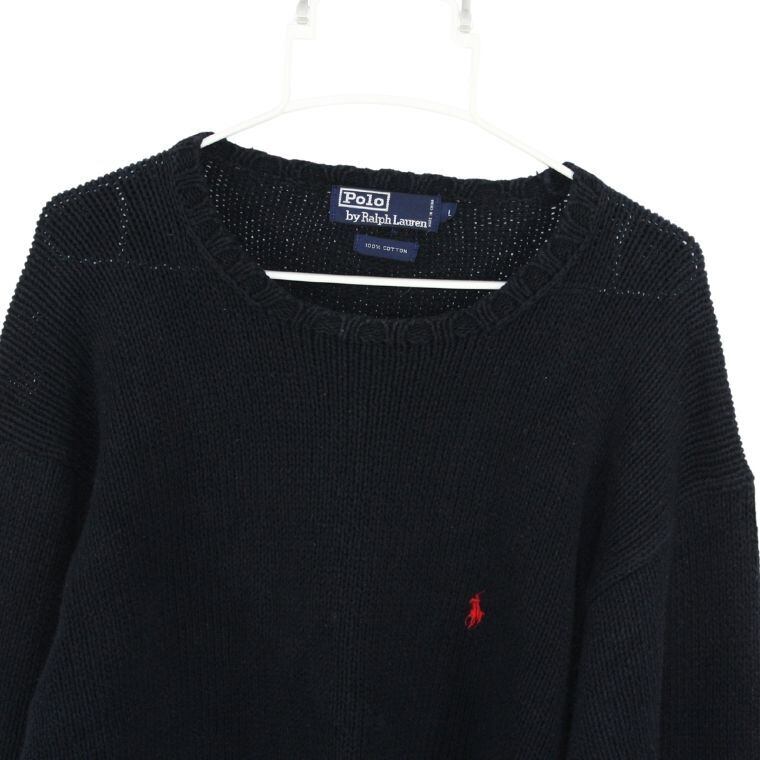 ポロ ラルフローレン ニット セーター ブラック Lサイズ コットン100% ワンポイントロゴ メンズ レディース