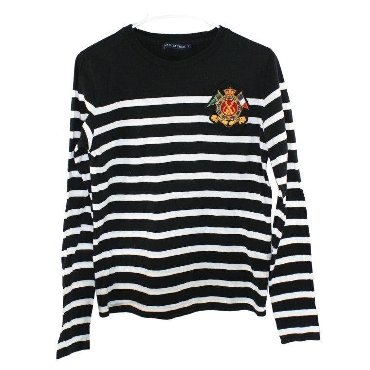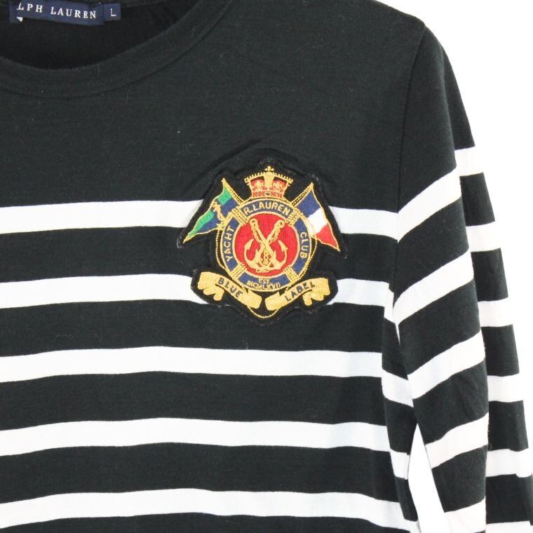 Ralph Lauren ラルフローレン ボーダーカットソー 刺繍ロゴ 日本製 レディースL