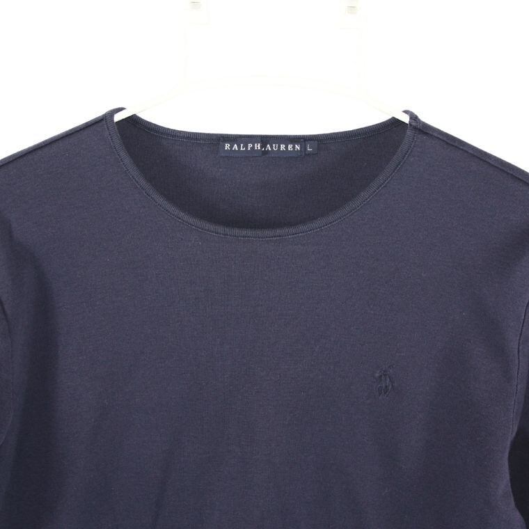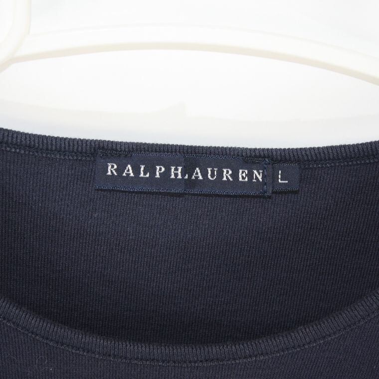 ラルフローレン 七分袖カットソー L ネイビー ワンポイント刺繍 日本製 レディース