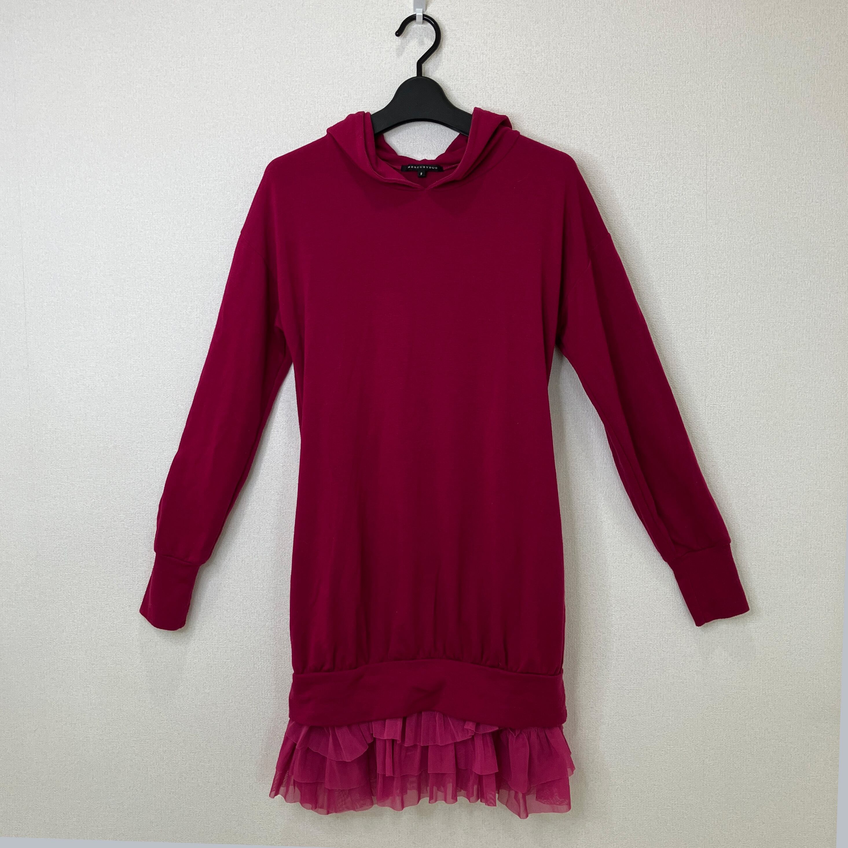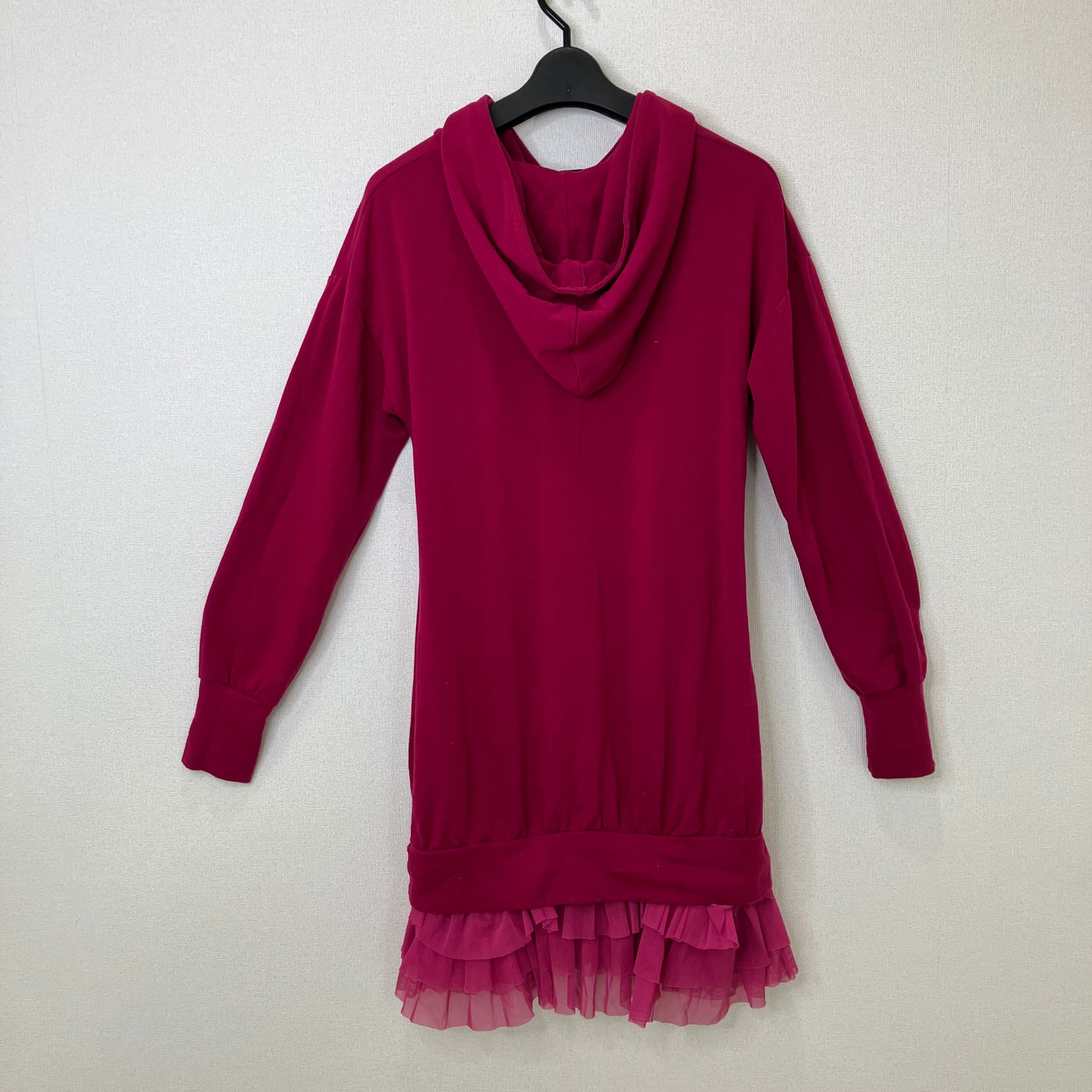 MERCURYDUO(マーキュリーデュオ)チュールフリル付 フーデッドワンピース ショッキングピンク Fサイズ