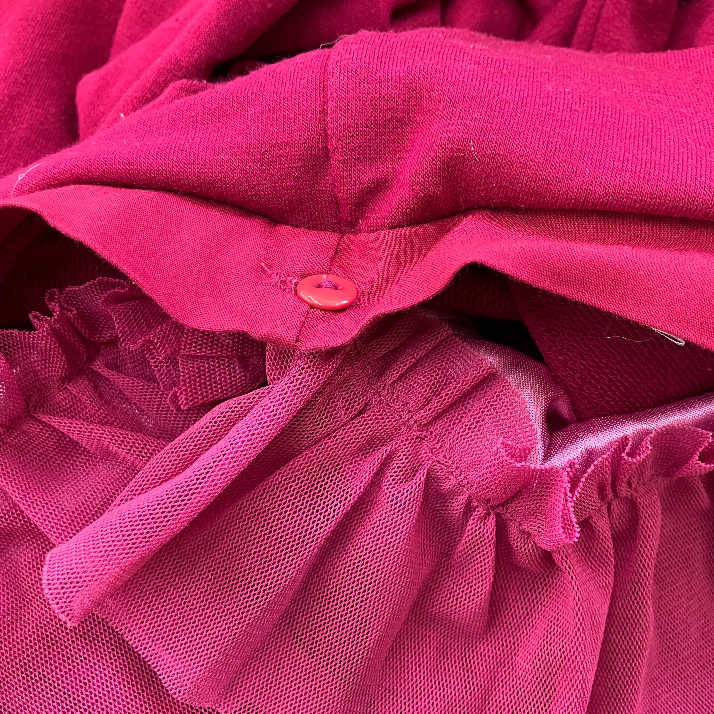 裾にはボリュームのあるチュールフリルがあしらわれており、カジュアルなパーカーデザインの中にフェミニンな要素が詰まっています。