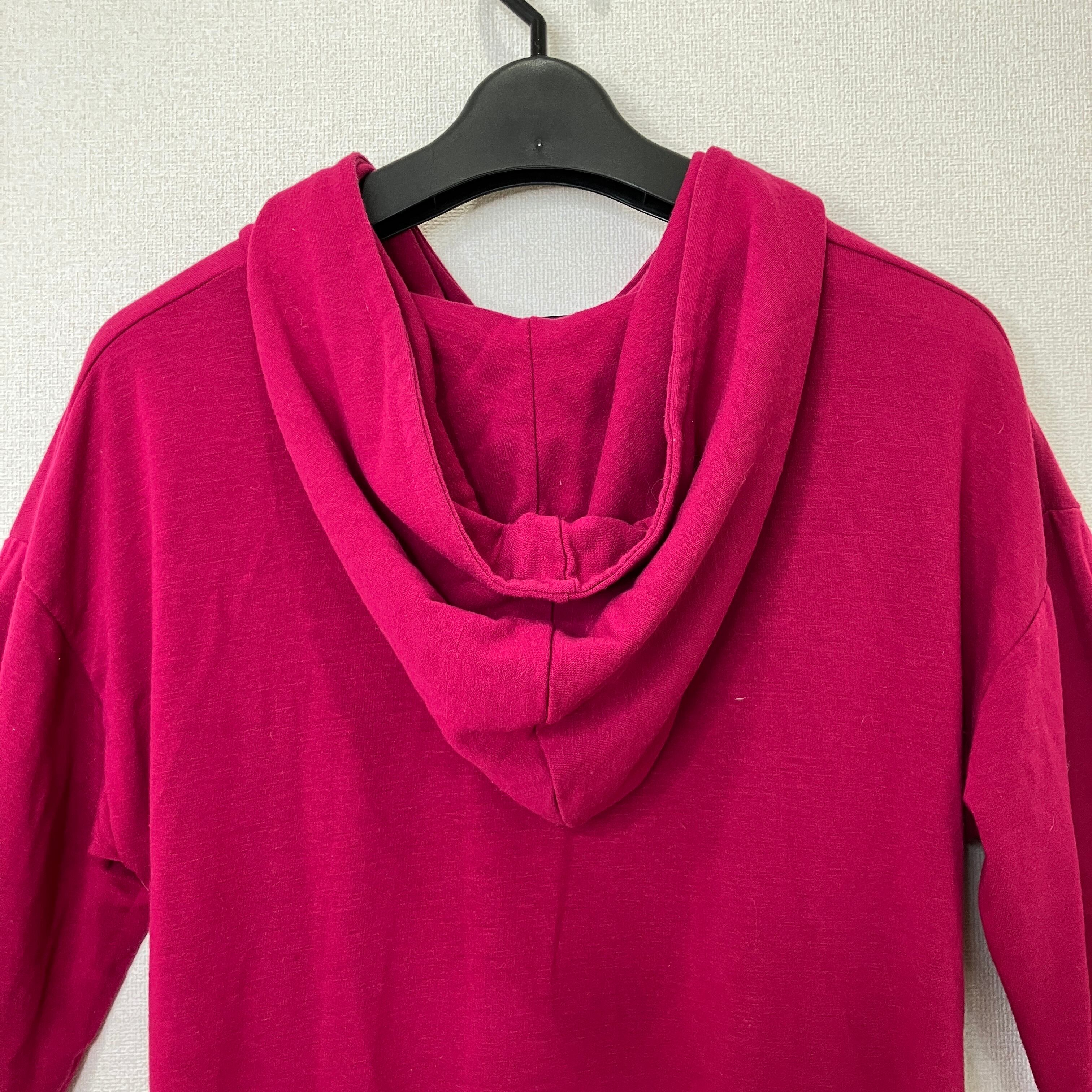 パッと目を引くショッキングピンクが鮮やかなフーデッドワンピースです。