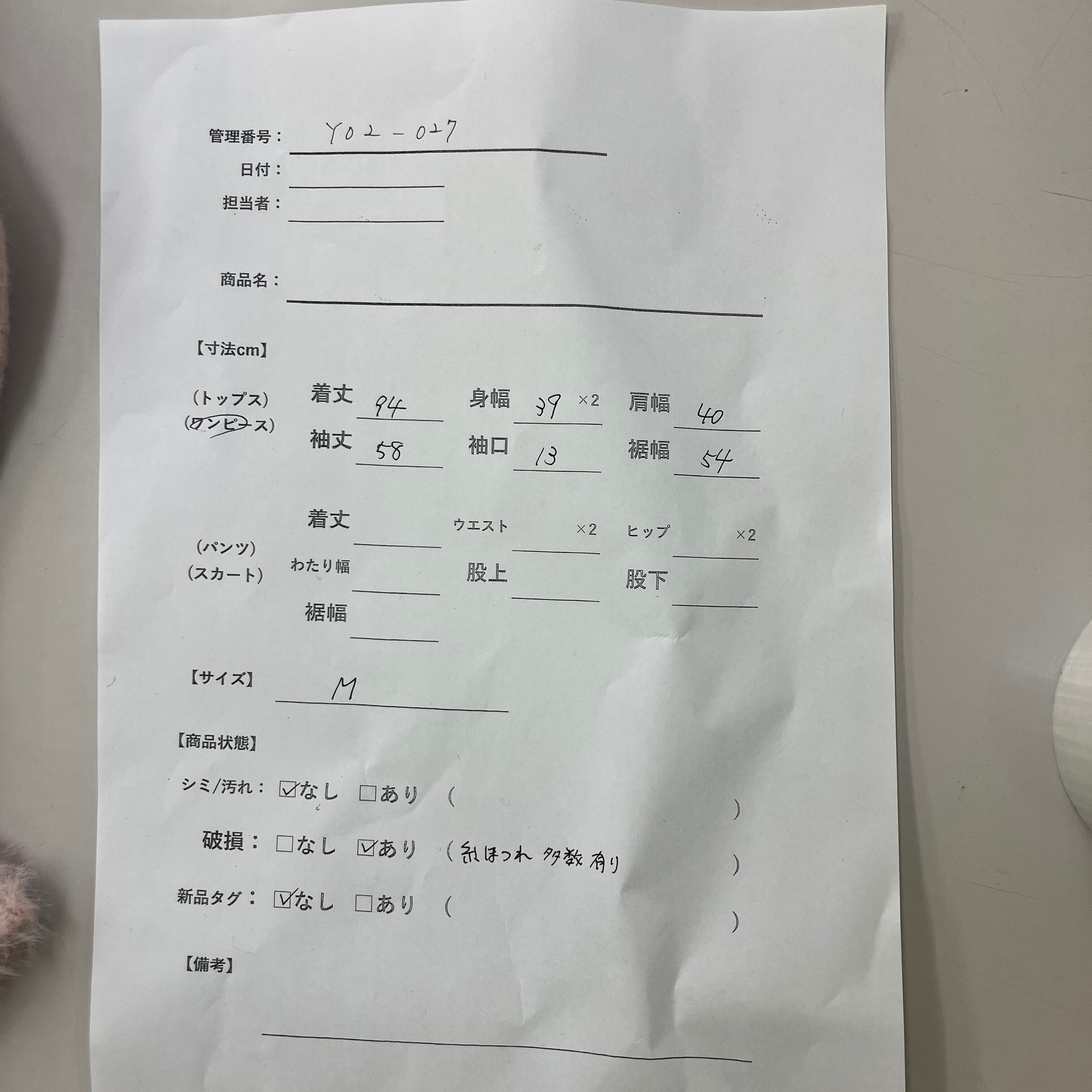 管理番号:Y02-027 #てまいらずアパレル商品一覧