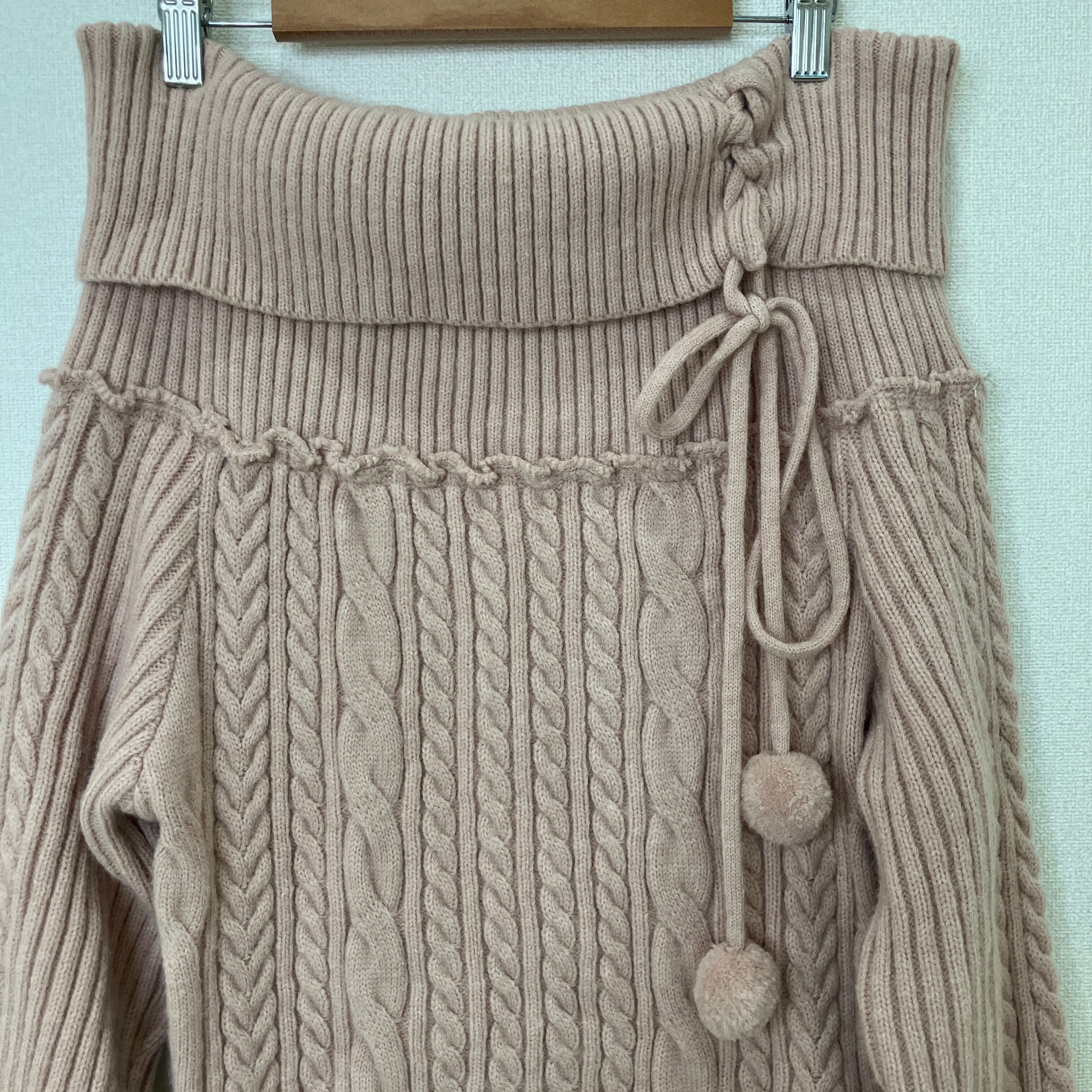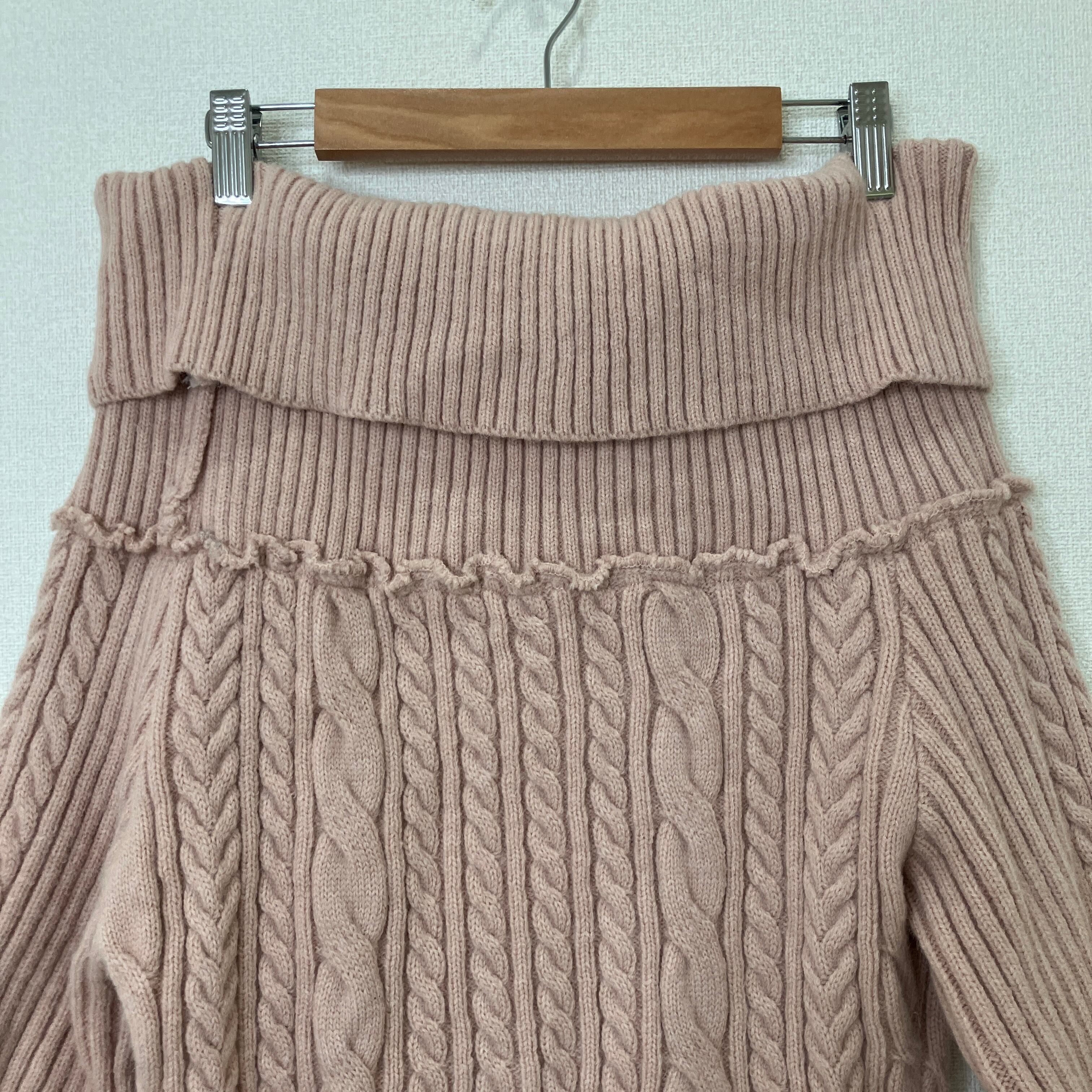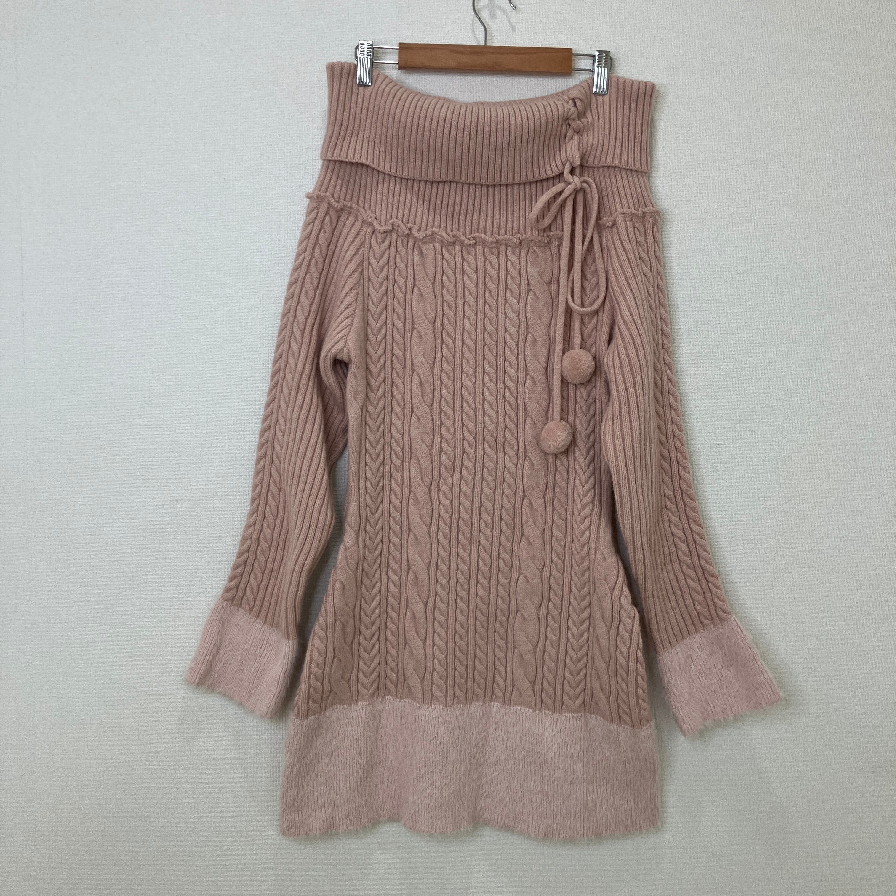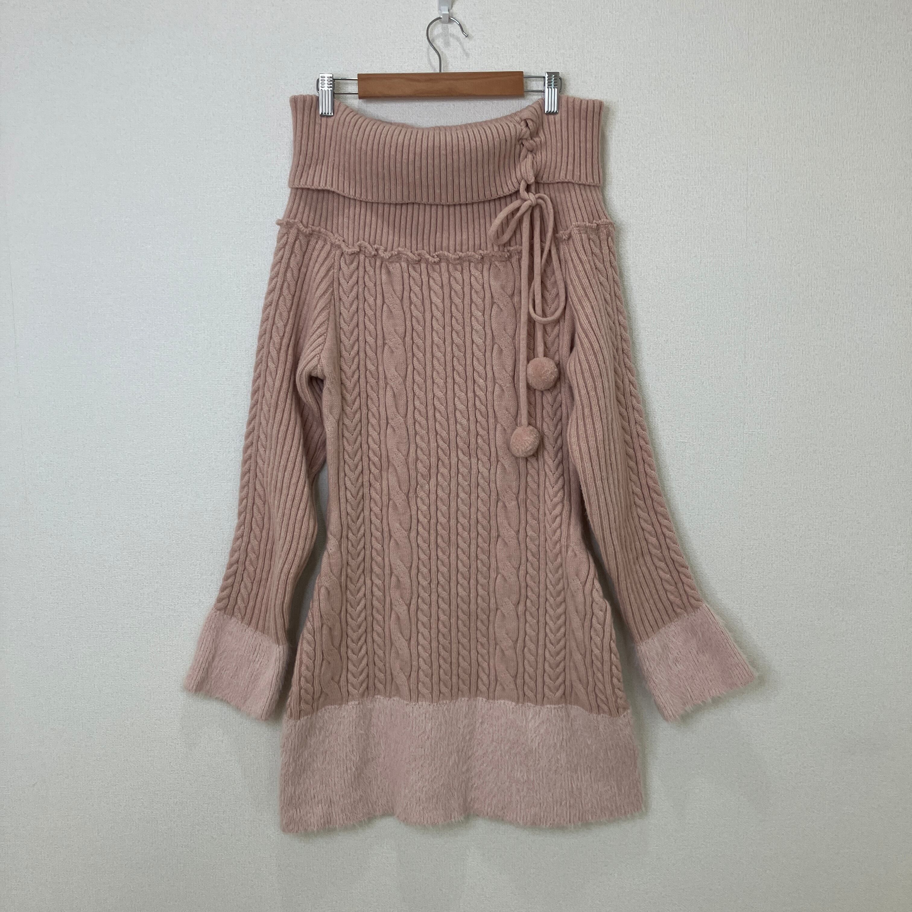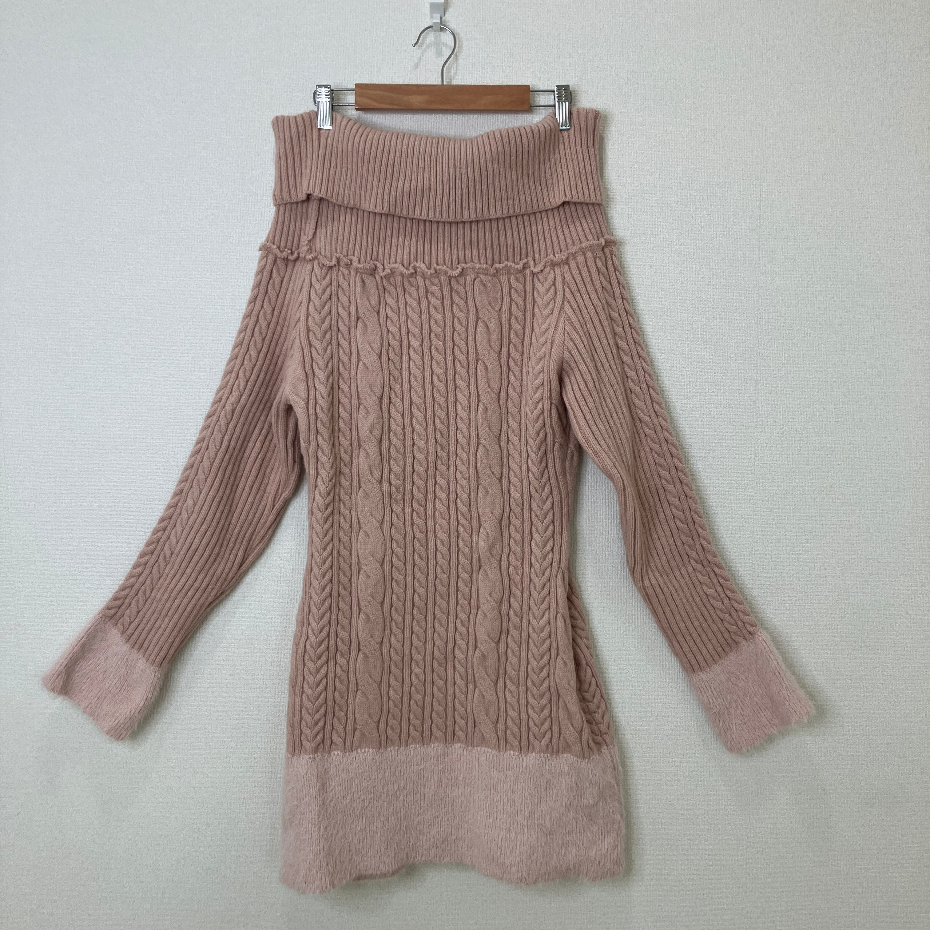 ROMWE オフショルダー ケーブルニット ワンピース ピンク Mサイズ