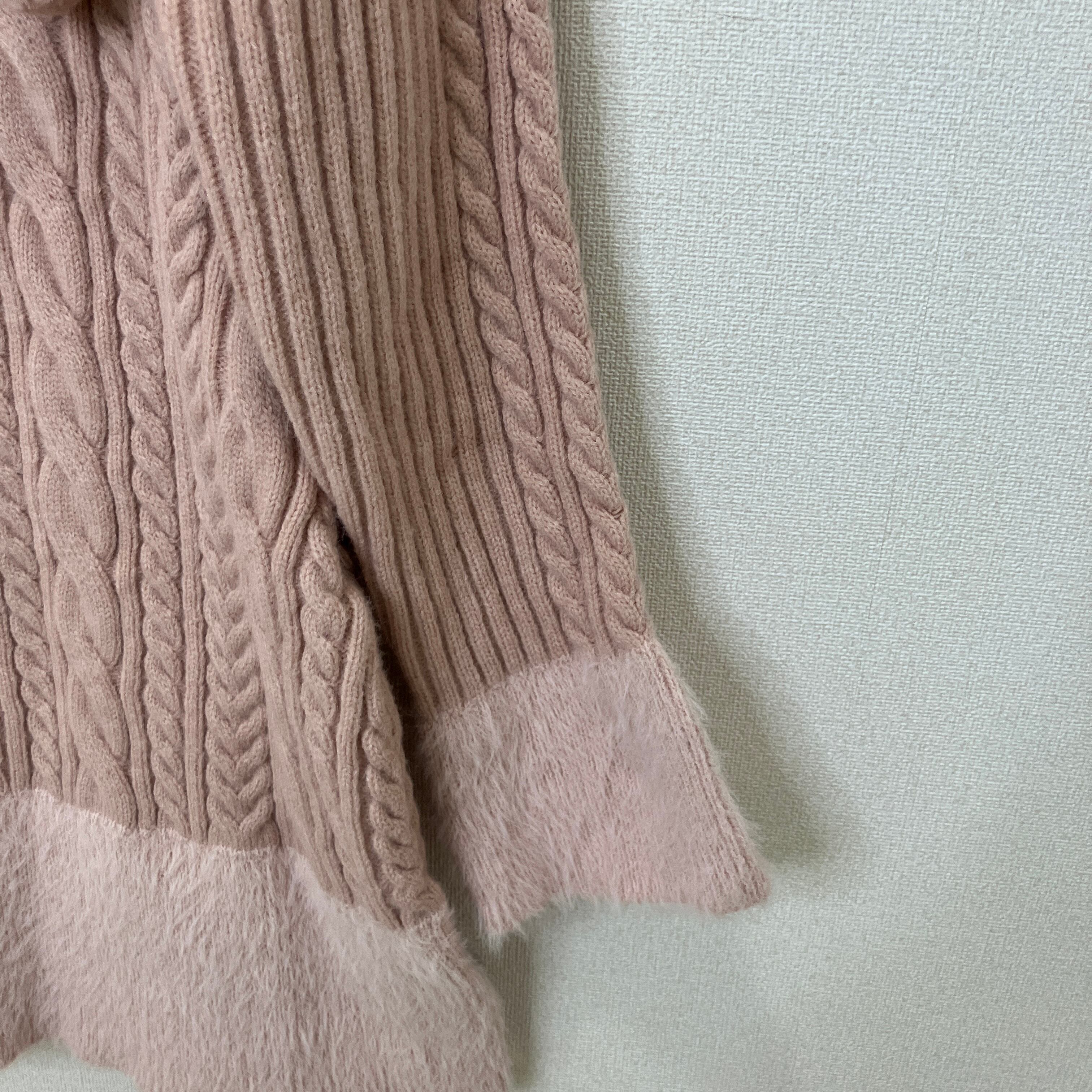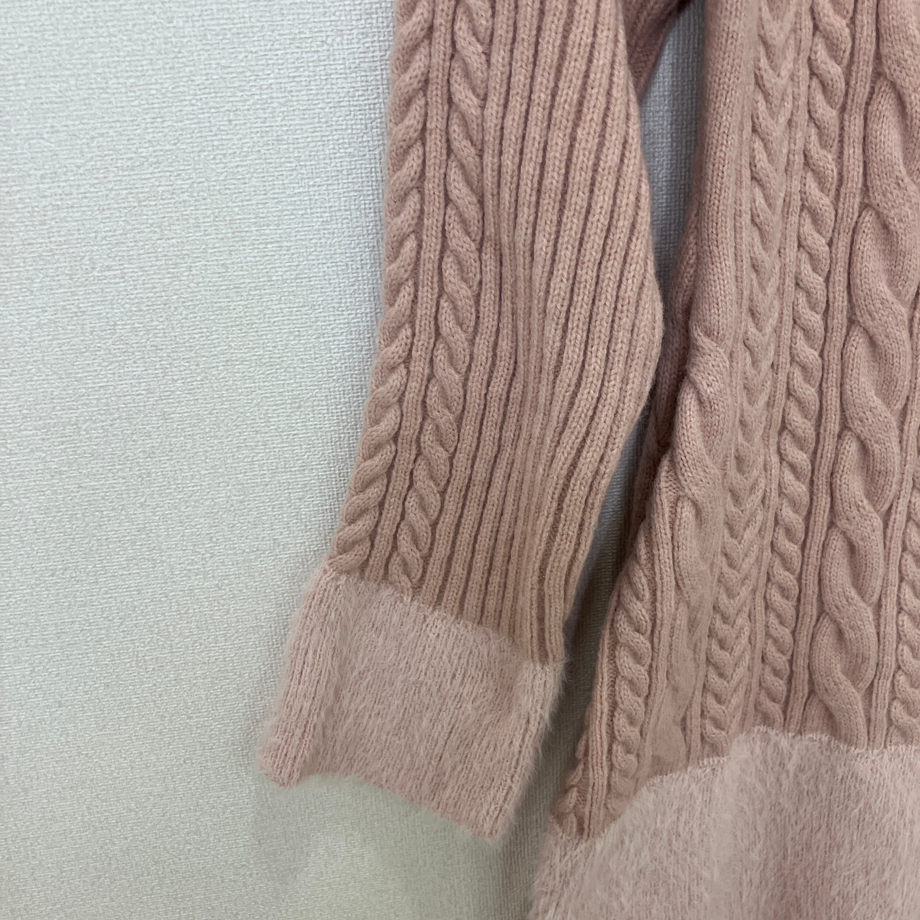 甘いピンクカラーとケーブル編みが可愛らしい、ROMWEのニットワンピースです。