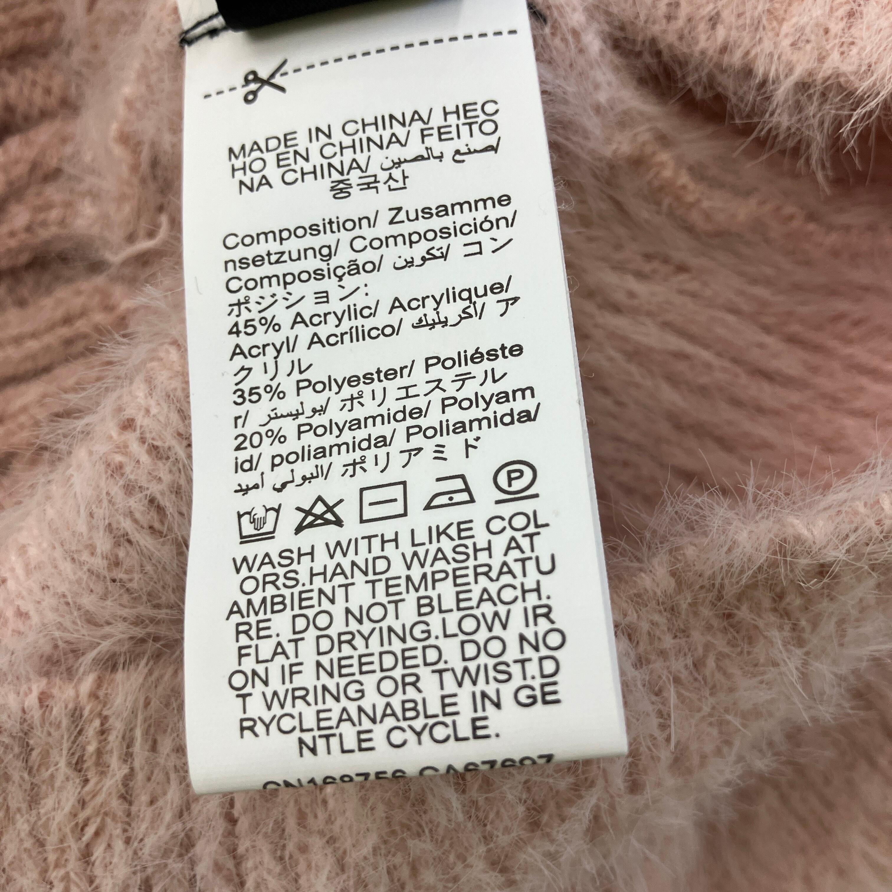 袖口と裾は毛足の長いシャギーニットの切り替えデザインになっており、これ一枚でフェミニンなコーディネートが完成します。
