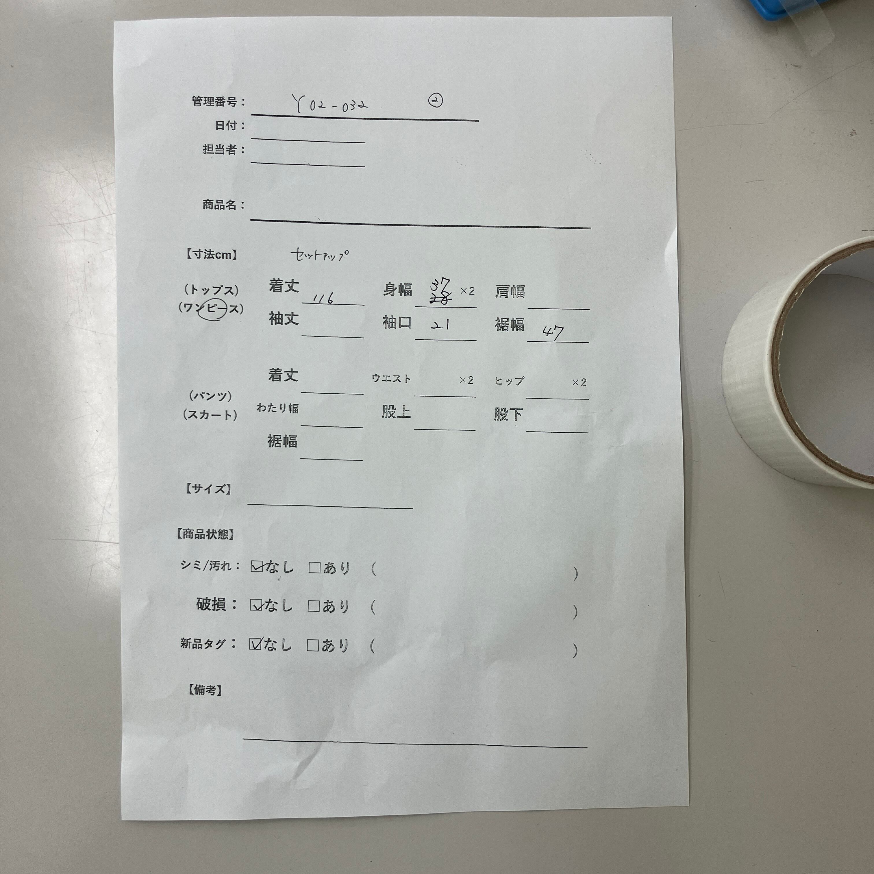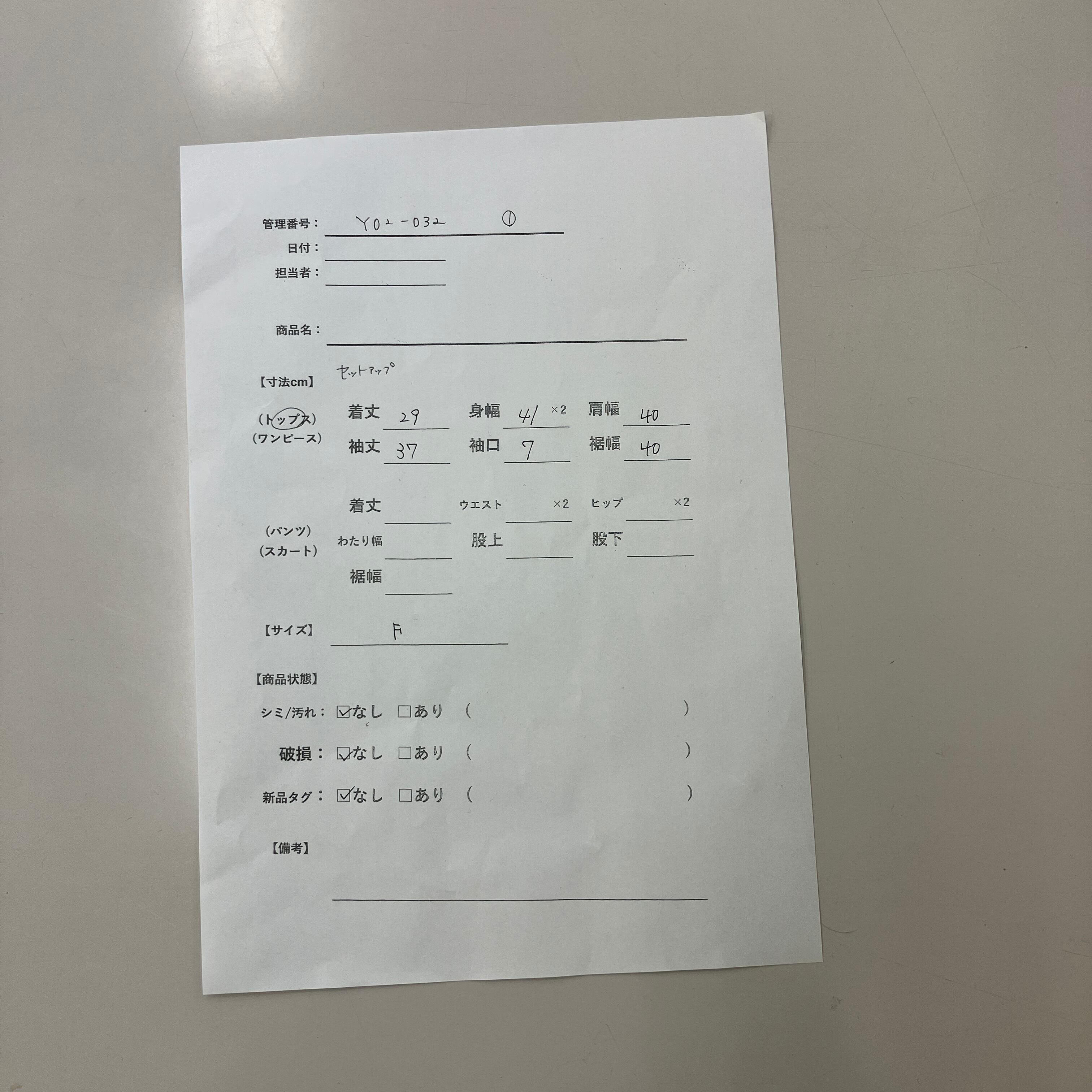 管理番号:Y02-032 #てまいらずアパレル商品一覧