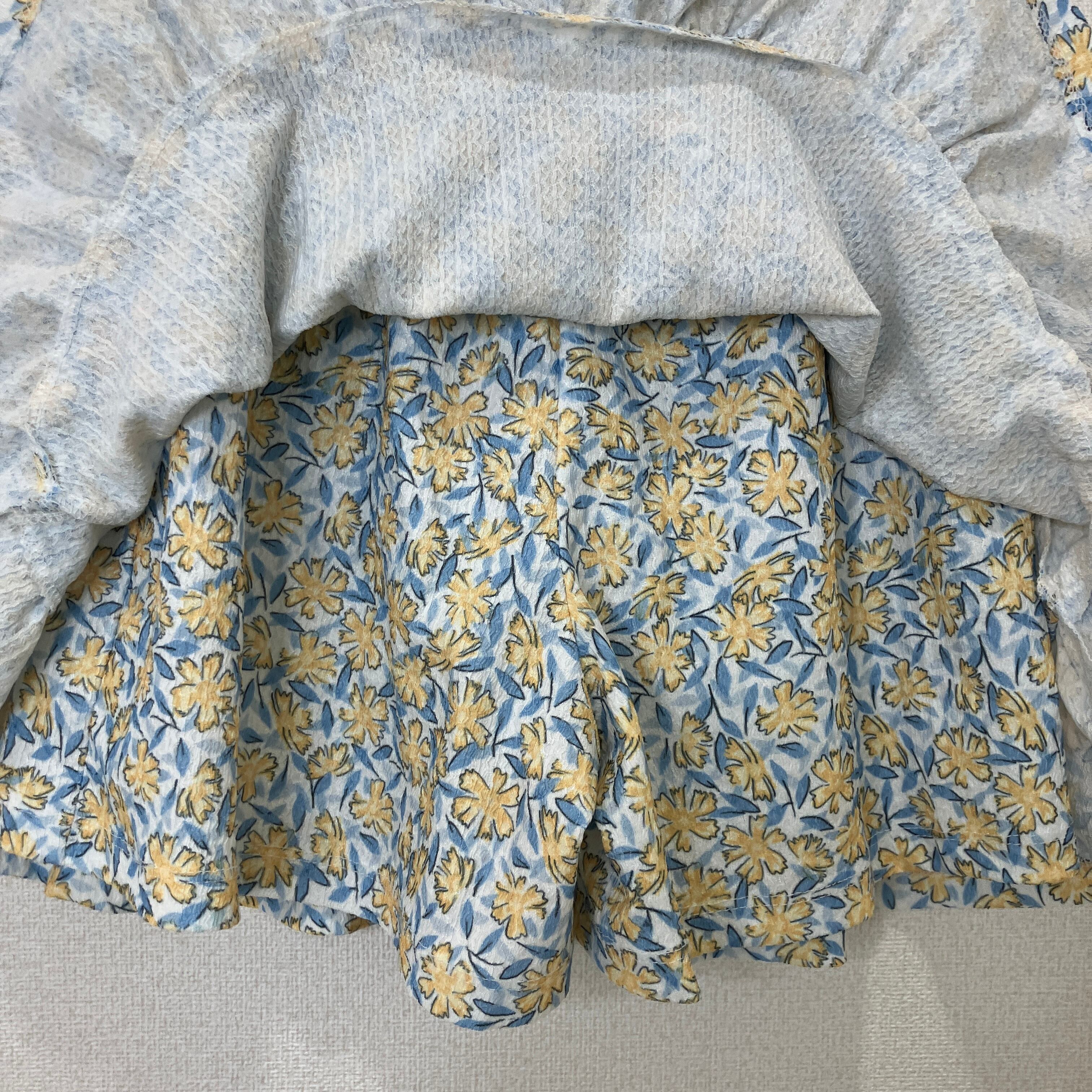 ZARA KIDS(ザラキッズ)花柄スカパン(スカートパンツ) イエロー×ブルー 164cm