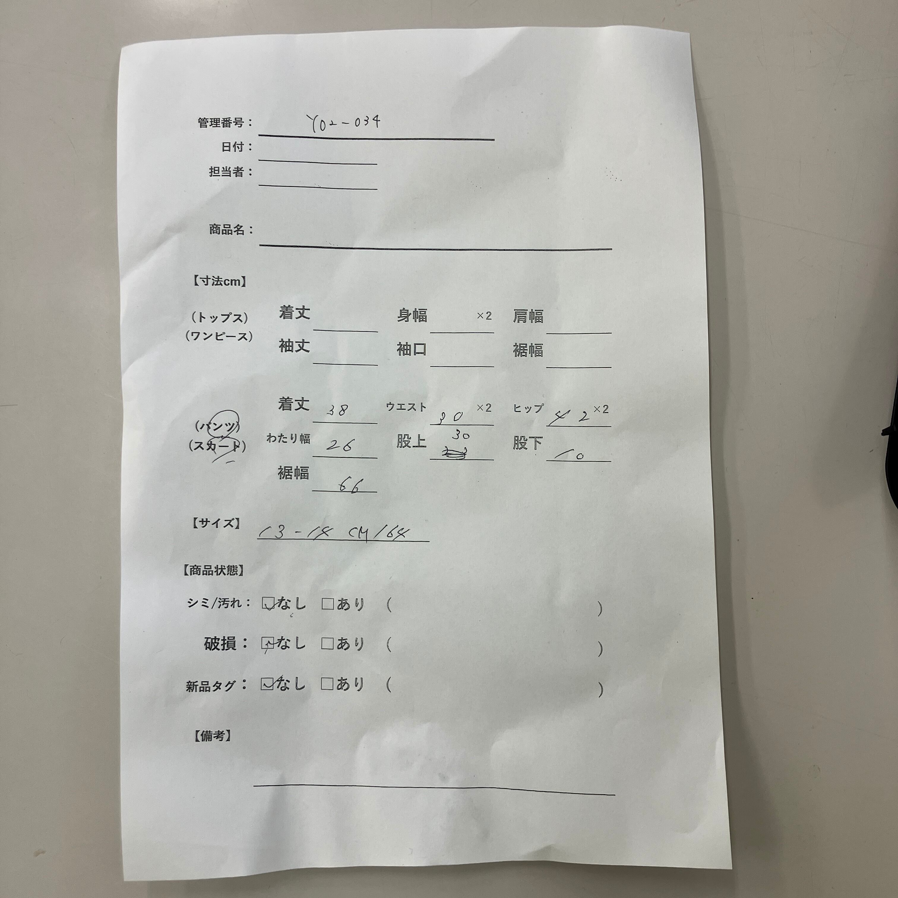 管理番号:Y02-034 #てまいらずアパレル商品一覧