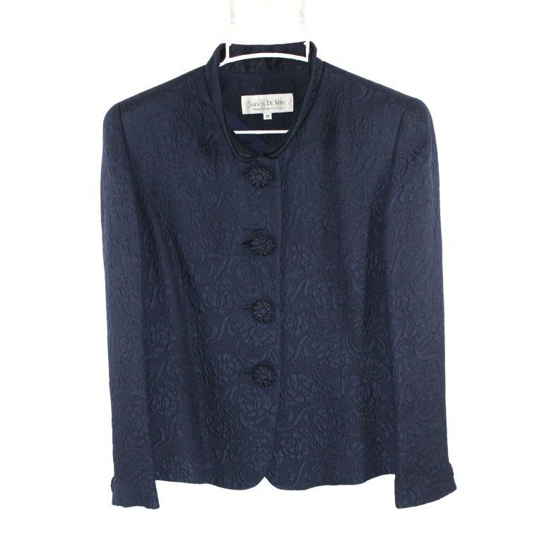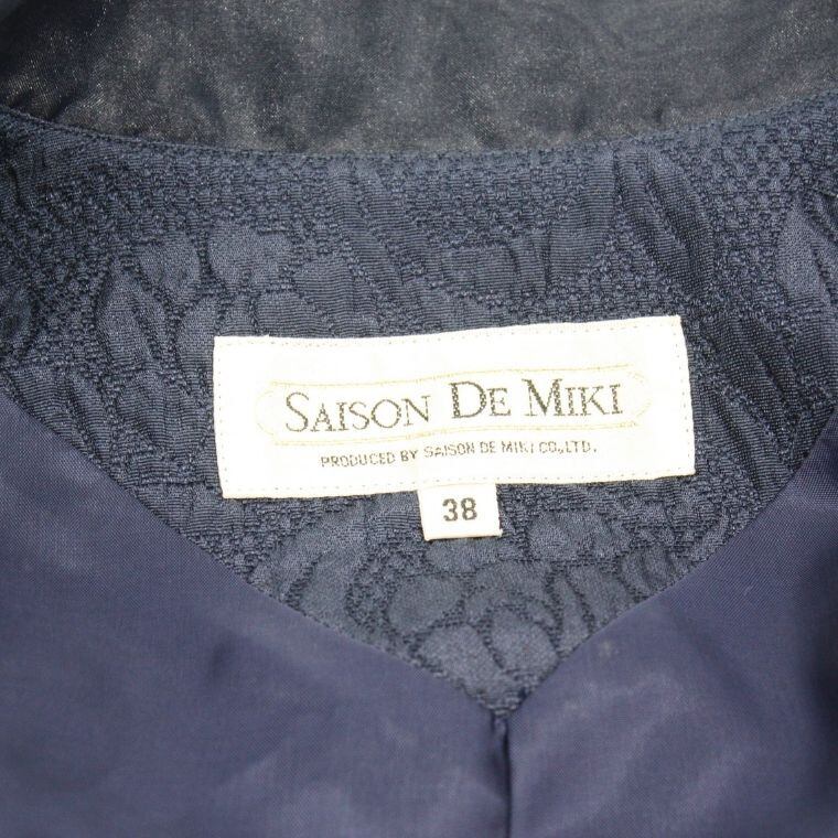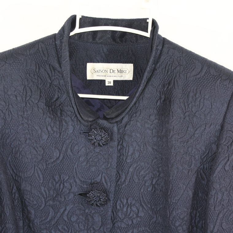 SAISON DE MIKI ジャガードジャケット 38 ネイビー 総柄 日本製