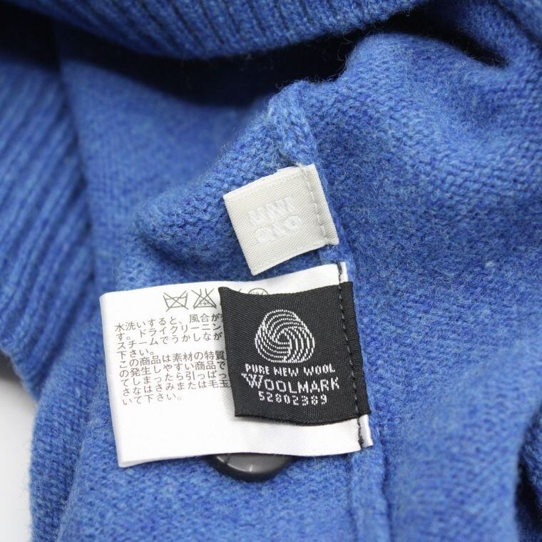 ユニクロ ラムウール100% カーディガン ブルー Lサイズ メンズ