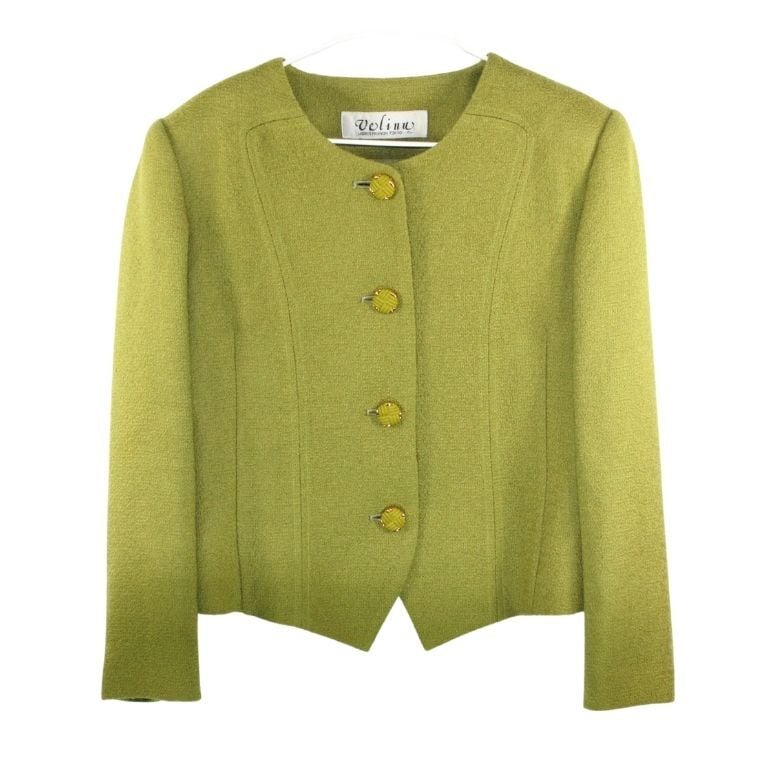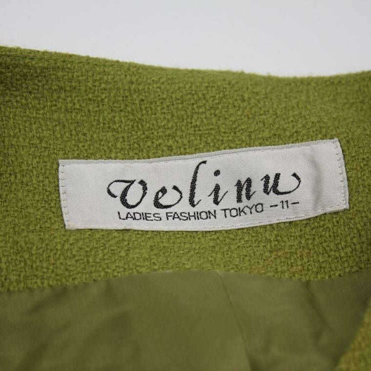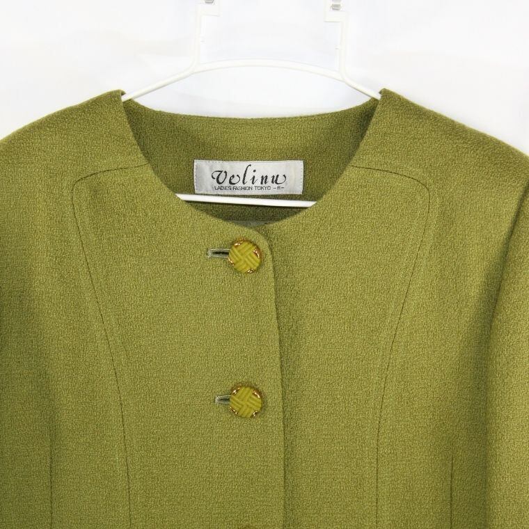 Velino レディース ノーカラージャケット グリーン系 サイズ11 肩パッド入り 日本製