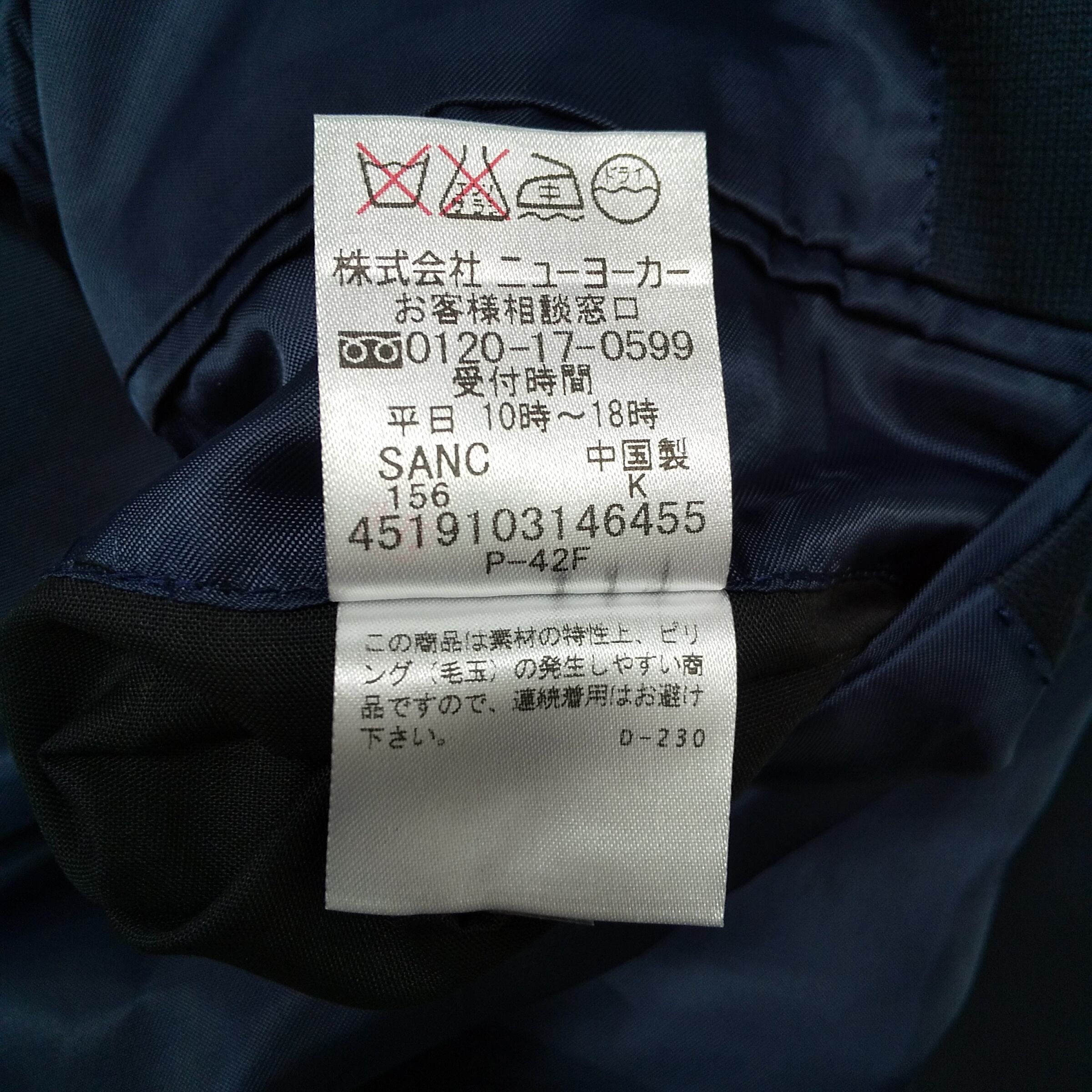 NEWYORKER テーラードジャケット ネイビー FMサイズ 綿混 日本製 オフィス フォーマル