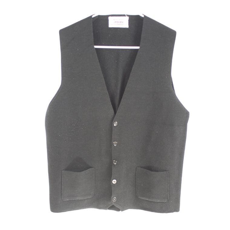 Majesty メンズ ニットベスト ブラック 無地 シンプル 重ね着 秋冬 古着