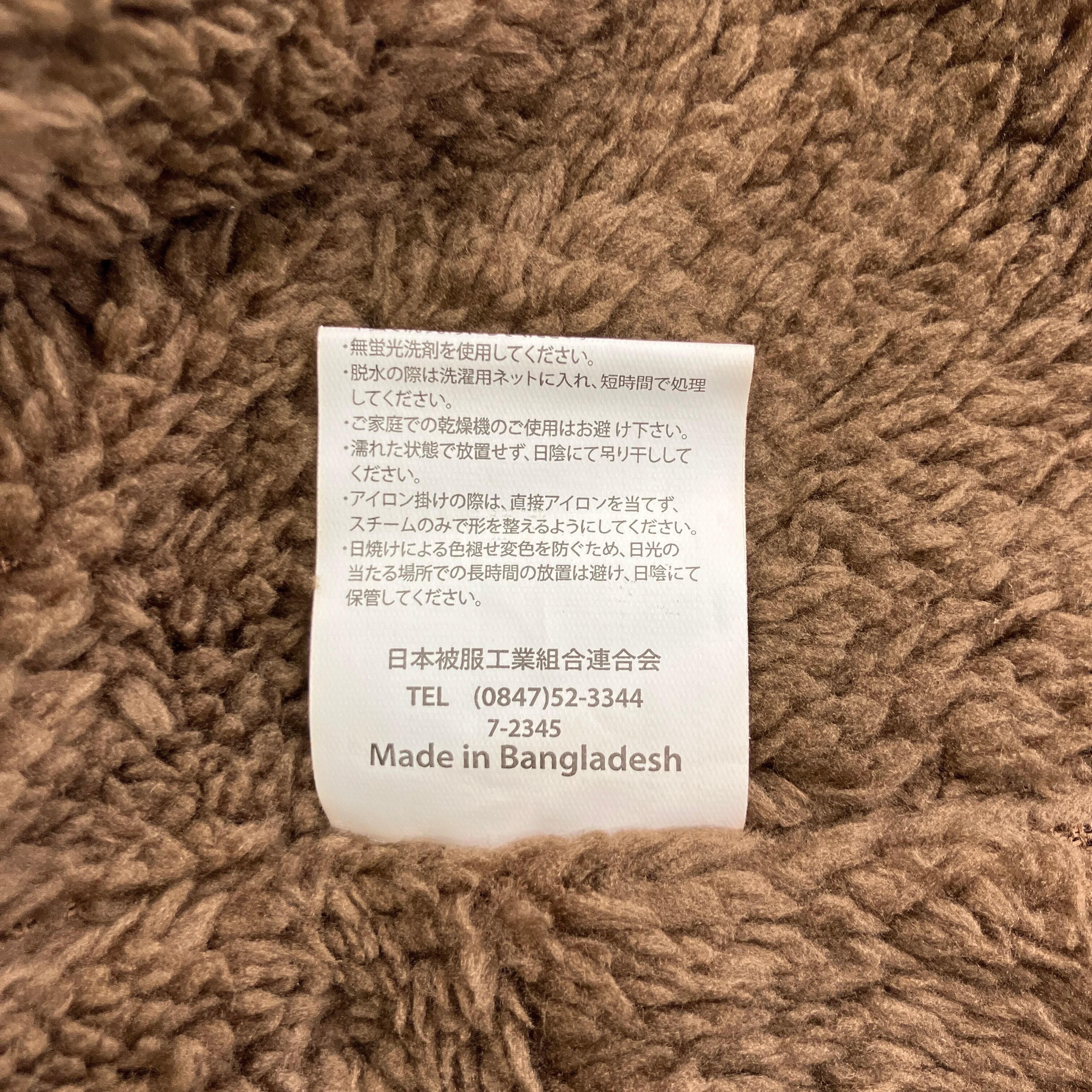 内側は暖かなブラウンのボア素材になっており、襟元にはチェック柄のアクセントがあしらわれています。
