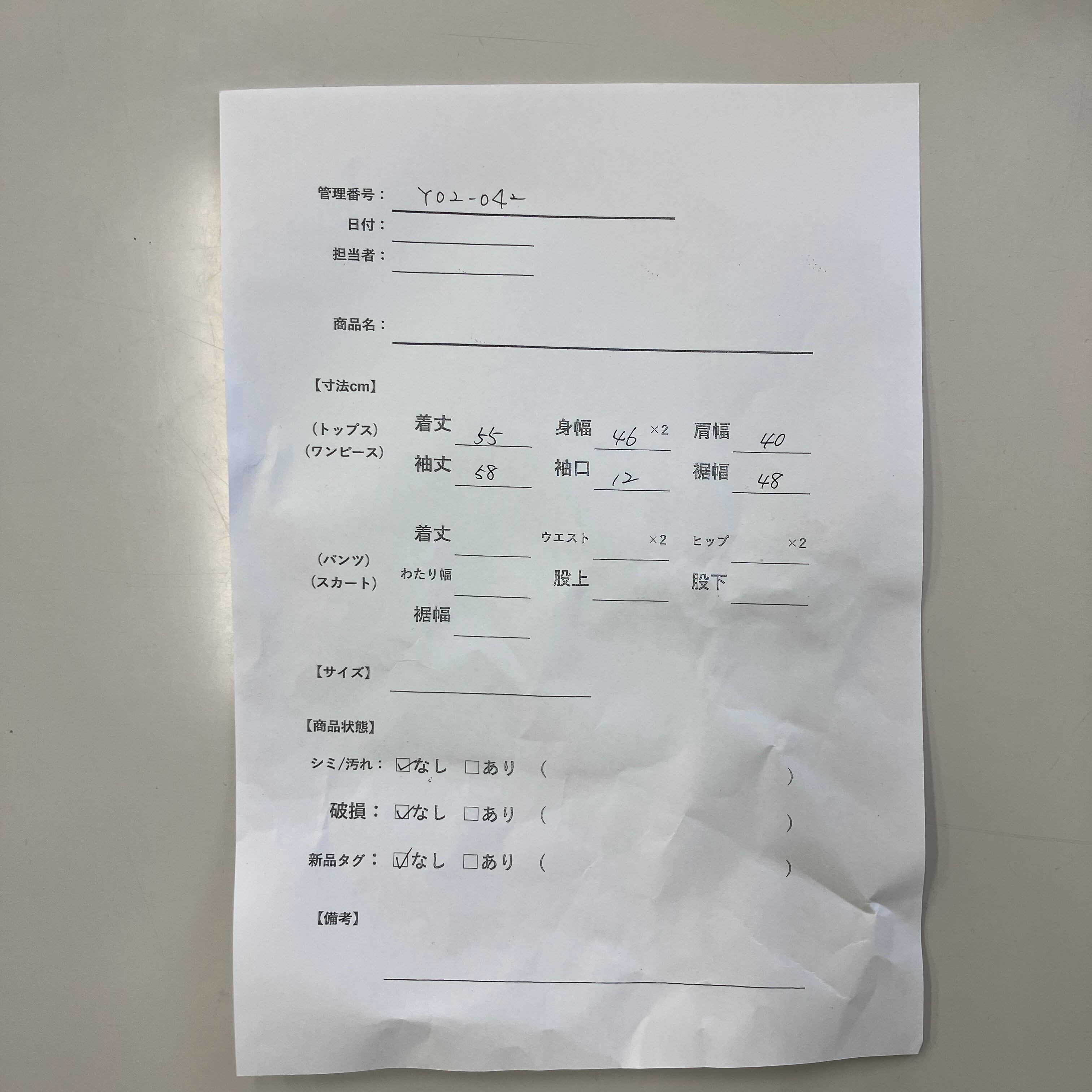 管理番号:Y02-042 #てまいらずアパレル商品一覧