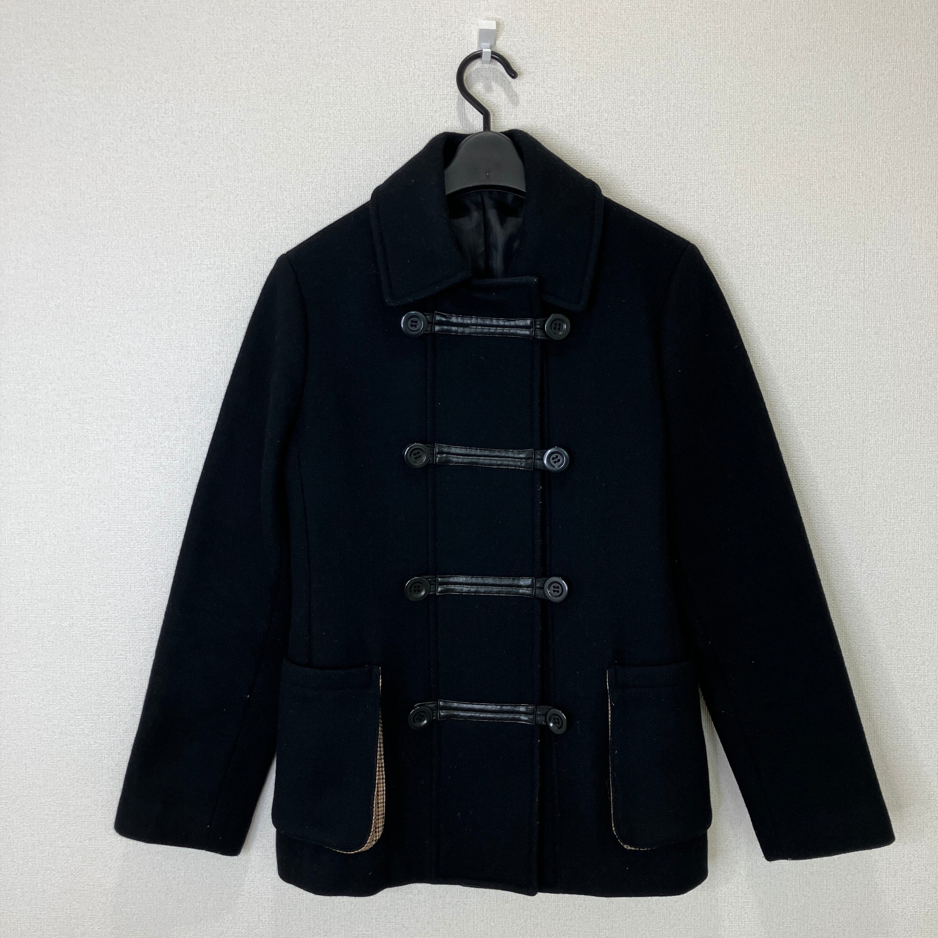 Juélamy(ジュエラミー)アンゴラ混 ウールコート ブラック レディース 11号 ダッフル風 ハーフ丈