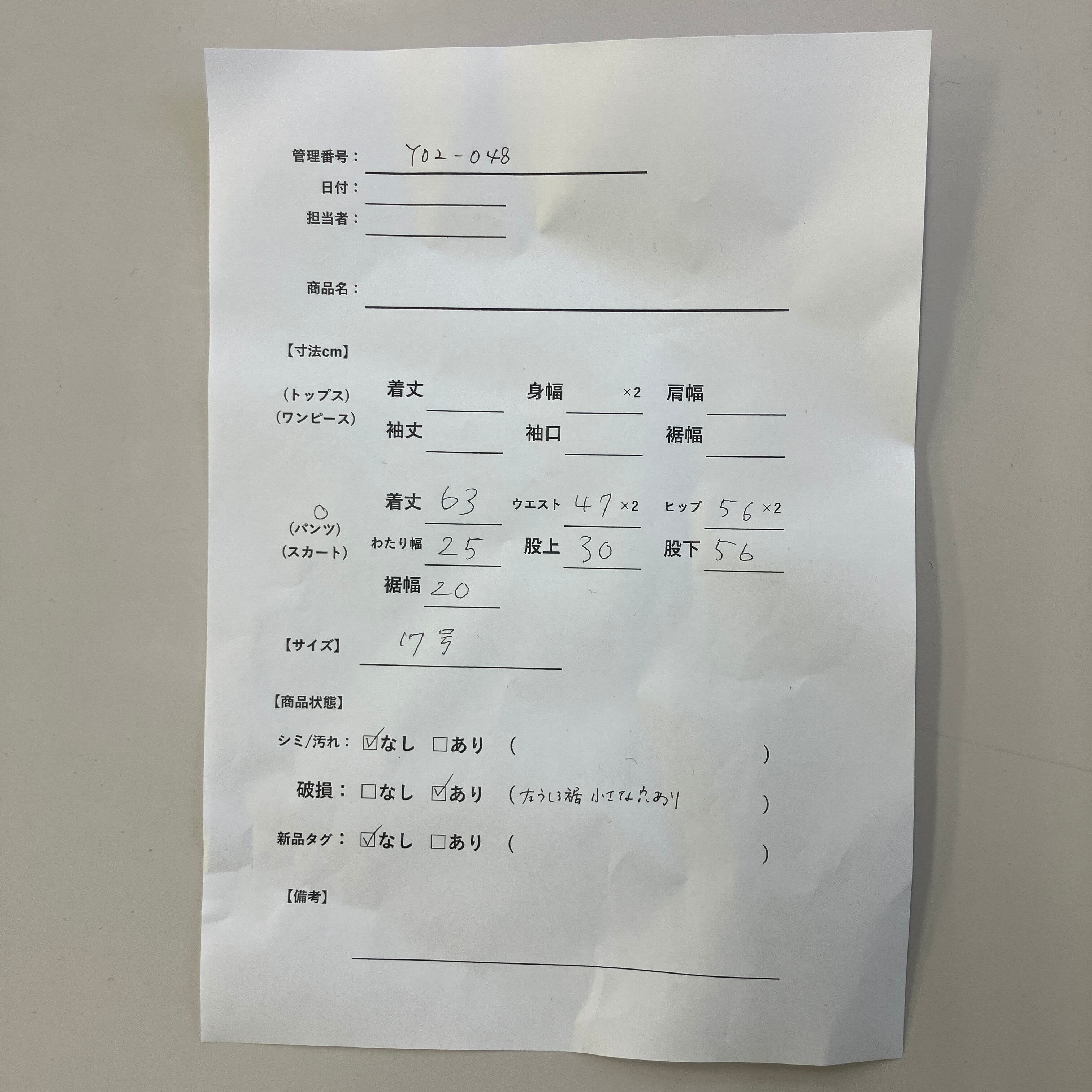 管理番号:Y02-048 #てまいらずアパレル商品一覧