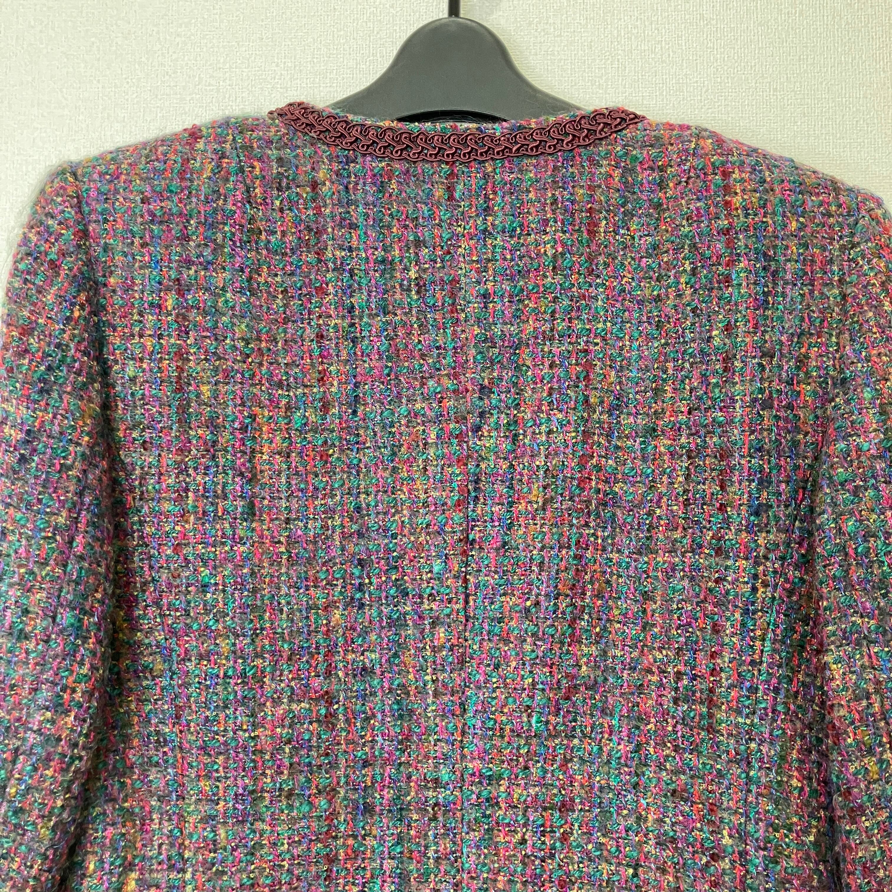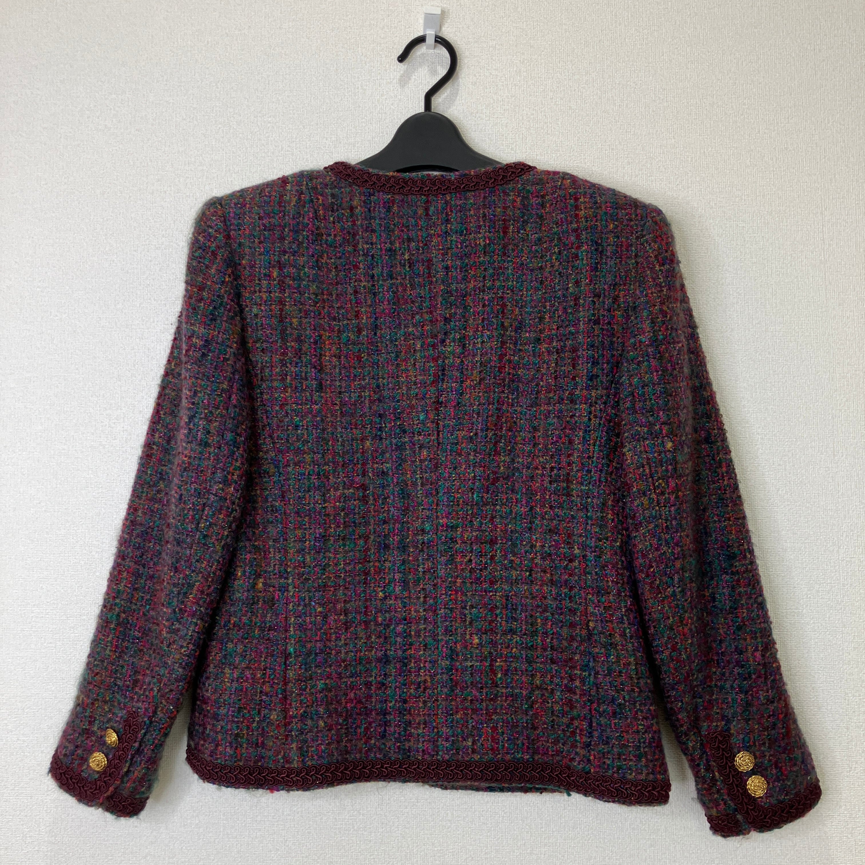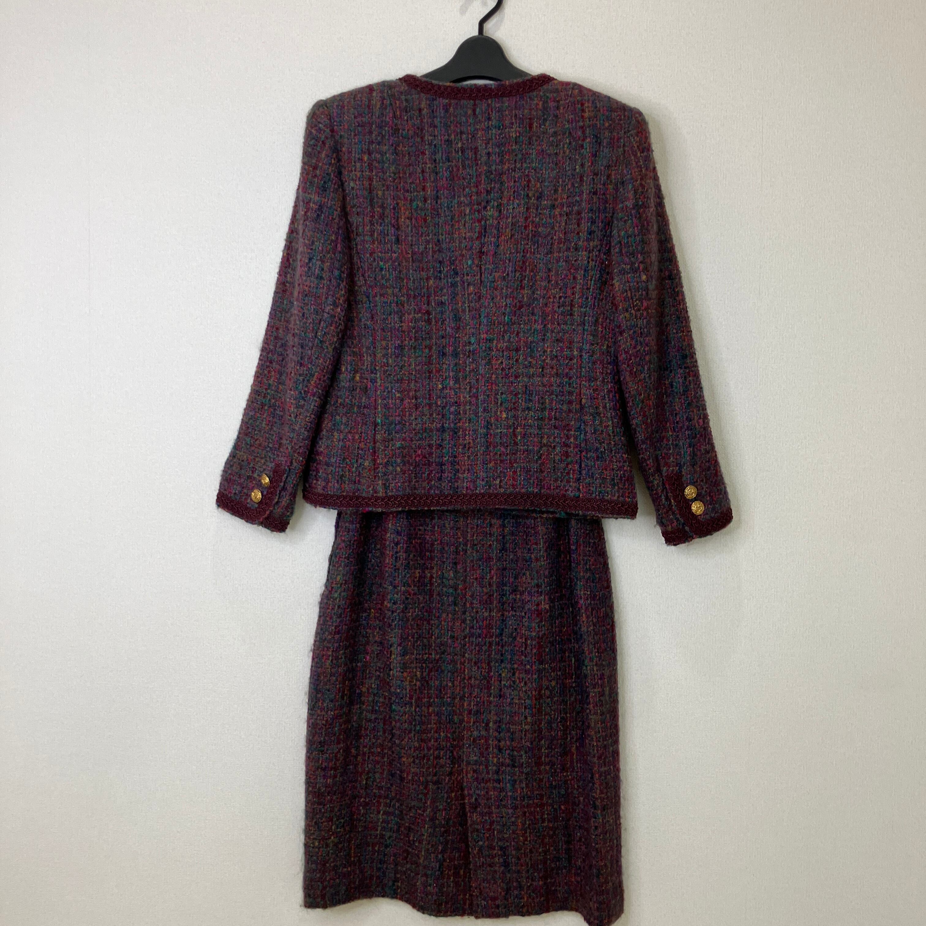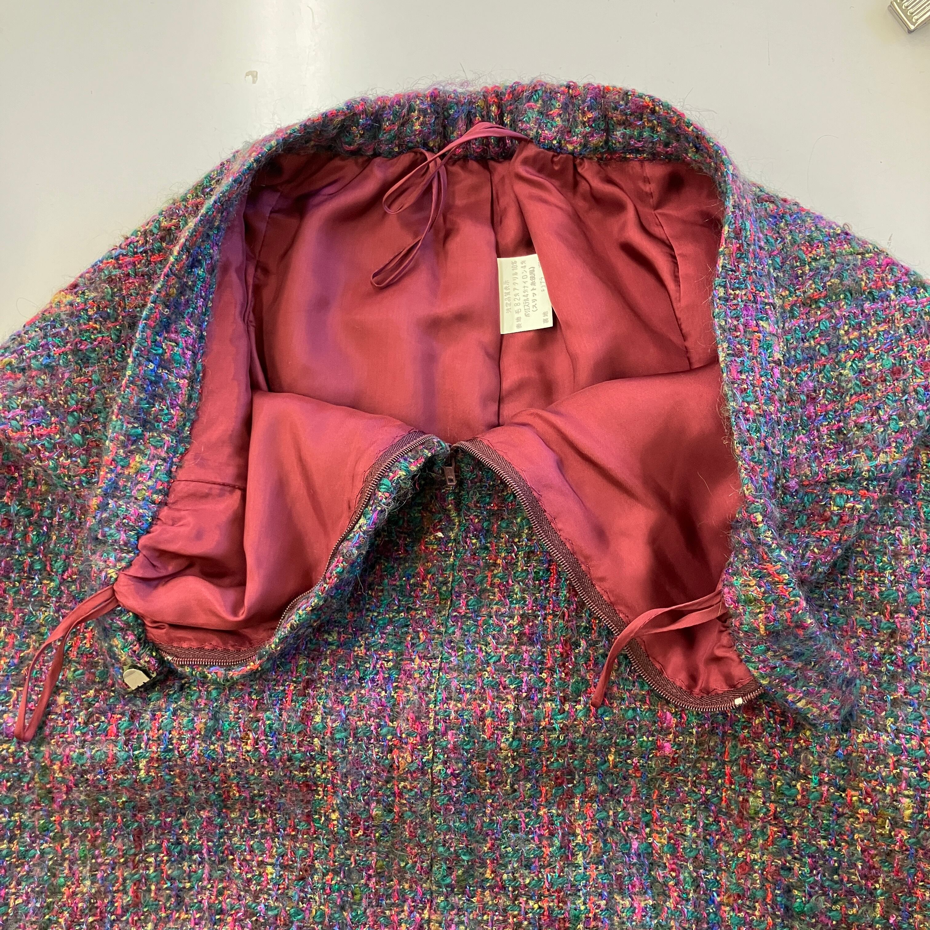 serizawa セリザワ ツイード セットアップ ノーカラージャケット スカート ボルドー マルチカラー