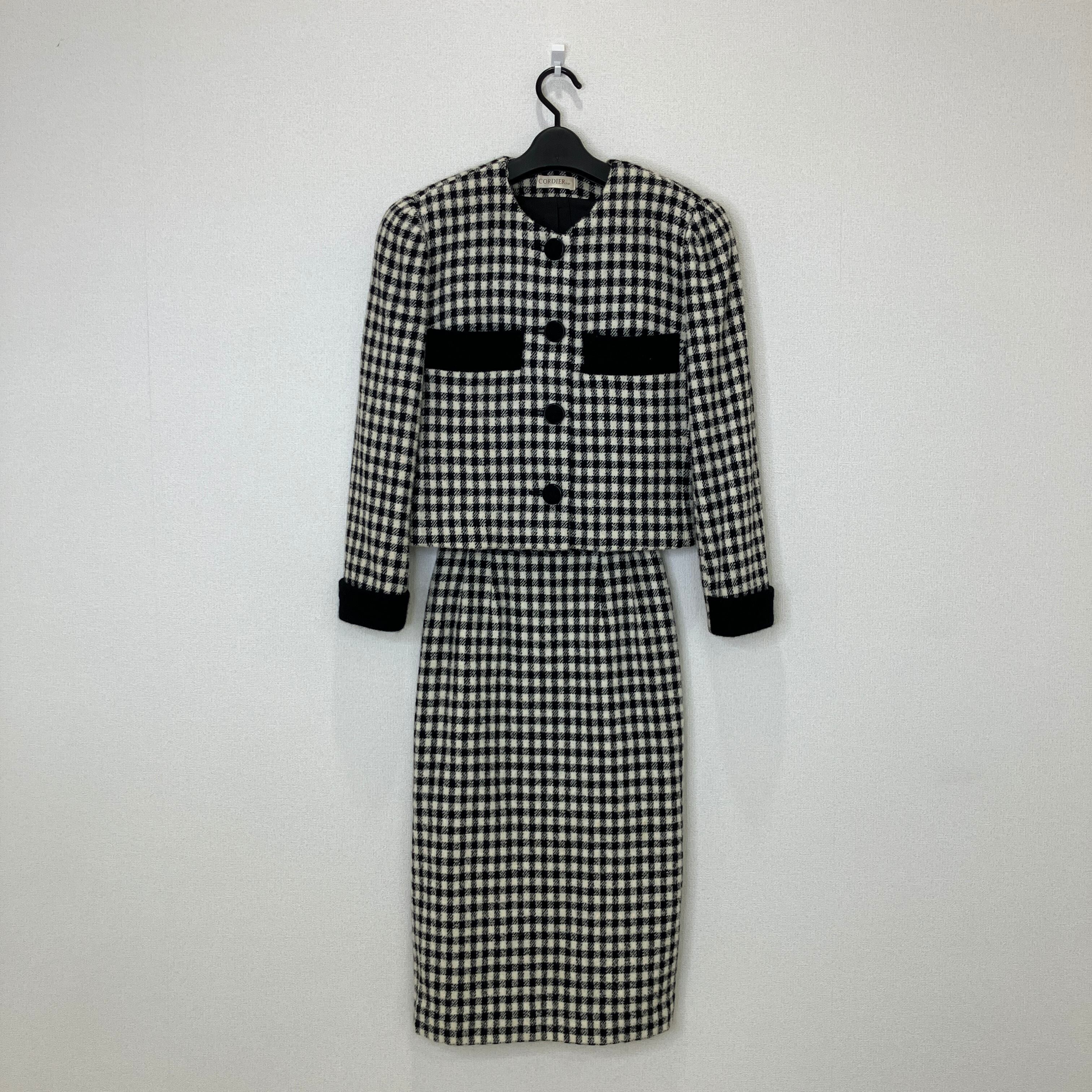 CORDIER(コルディア) アンゴラ混 ギンガムチェック柄 セットアップ スカートスーツ