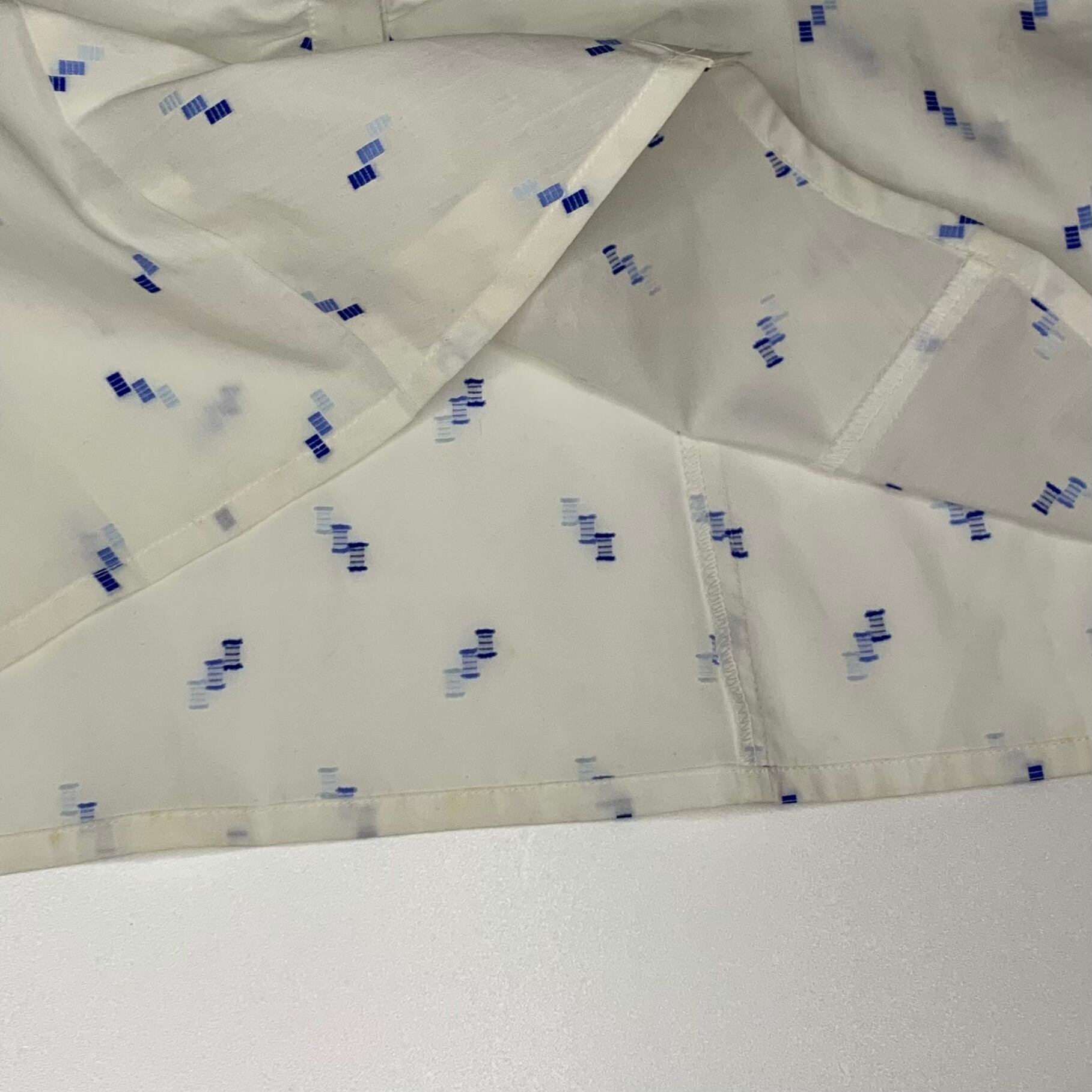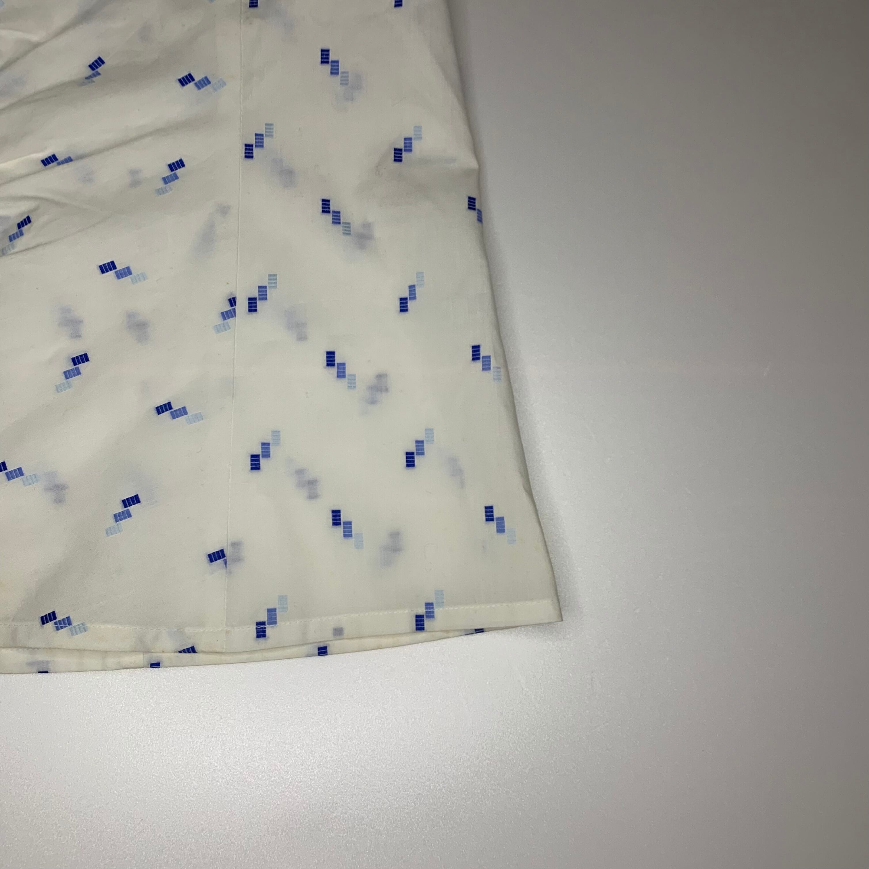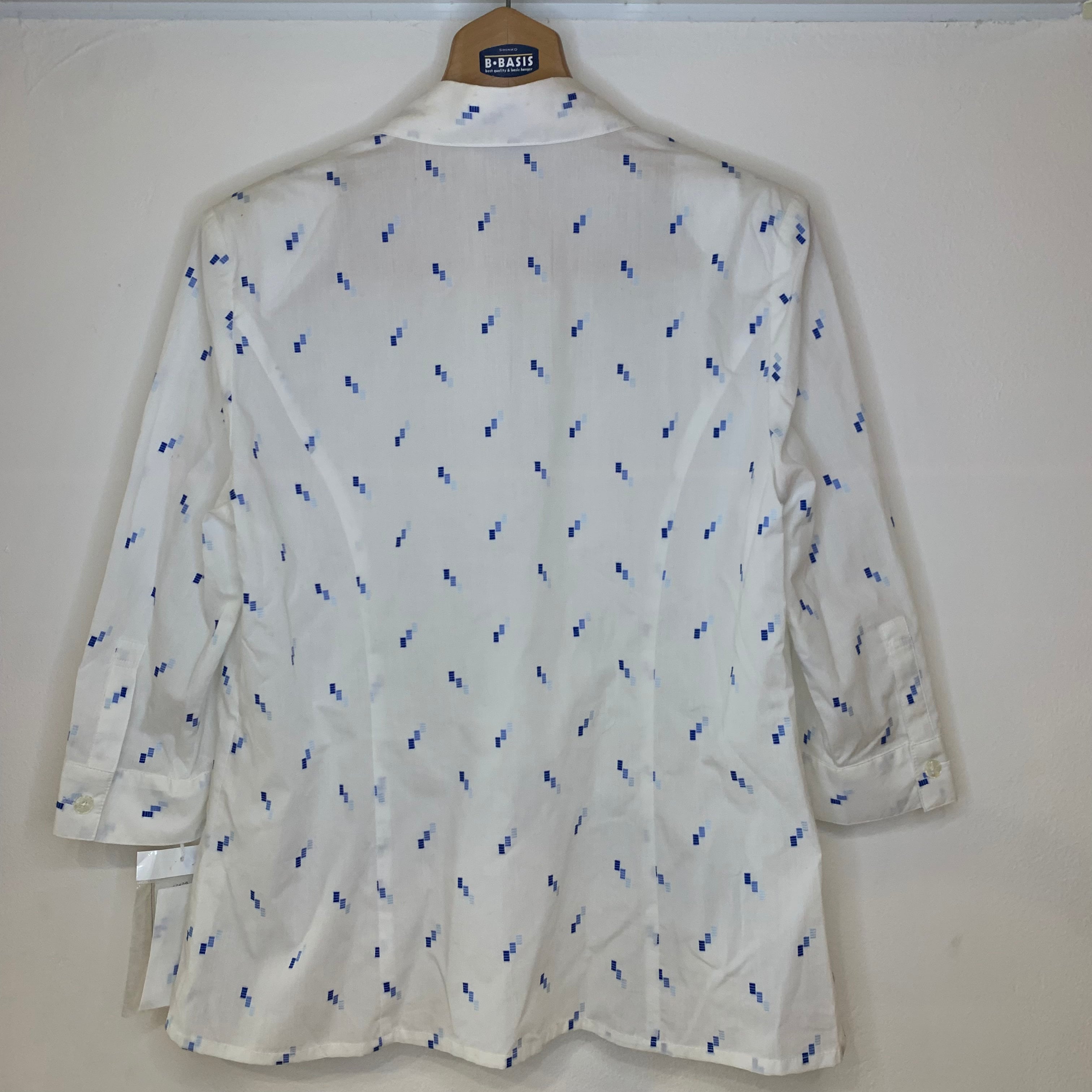 【商品概要】 白い生地に青色系の四角いモチーフが散りばめられた、爽やかな印象のブラウスです。