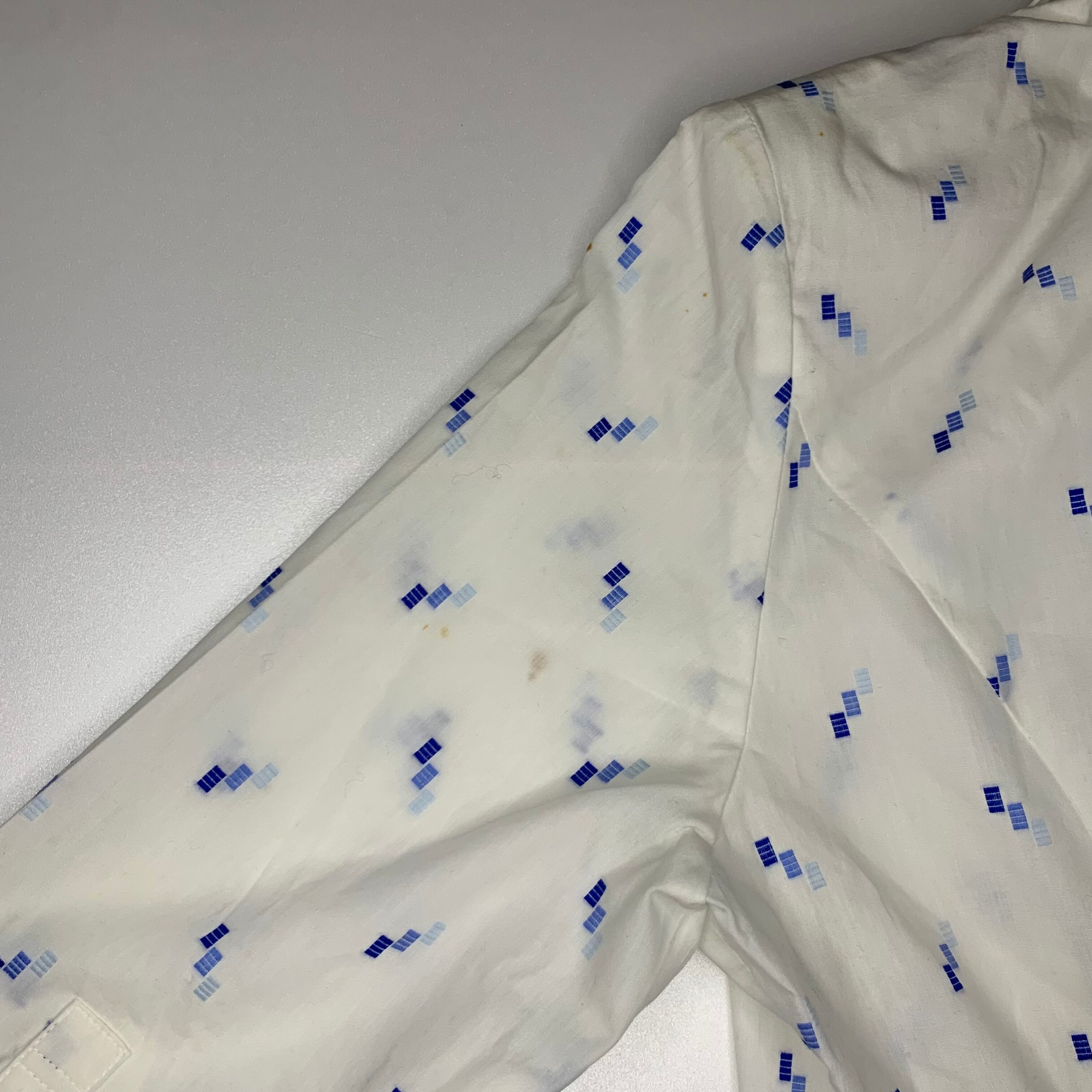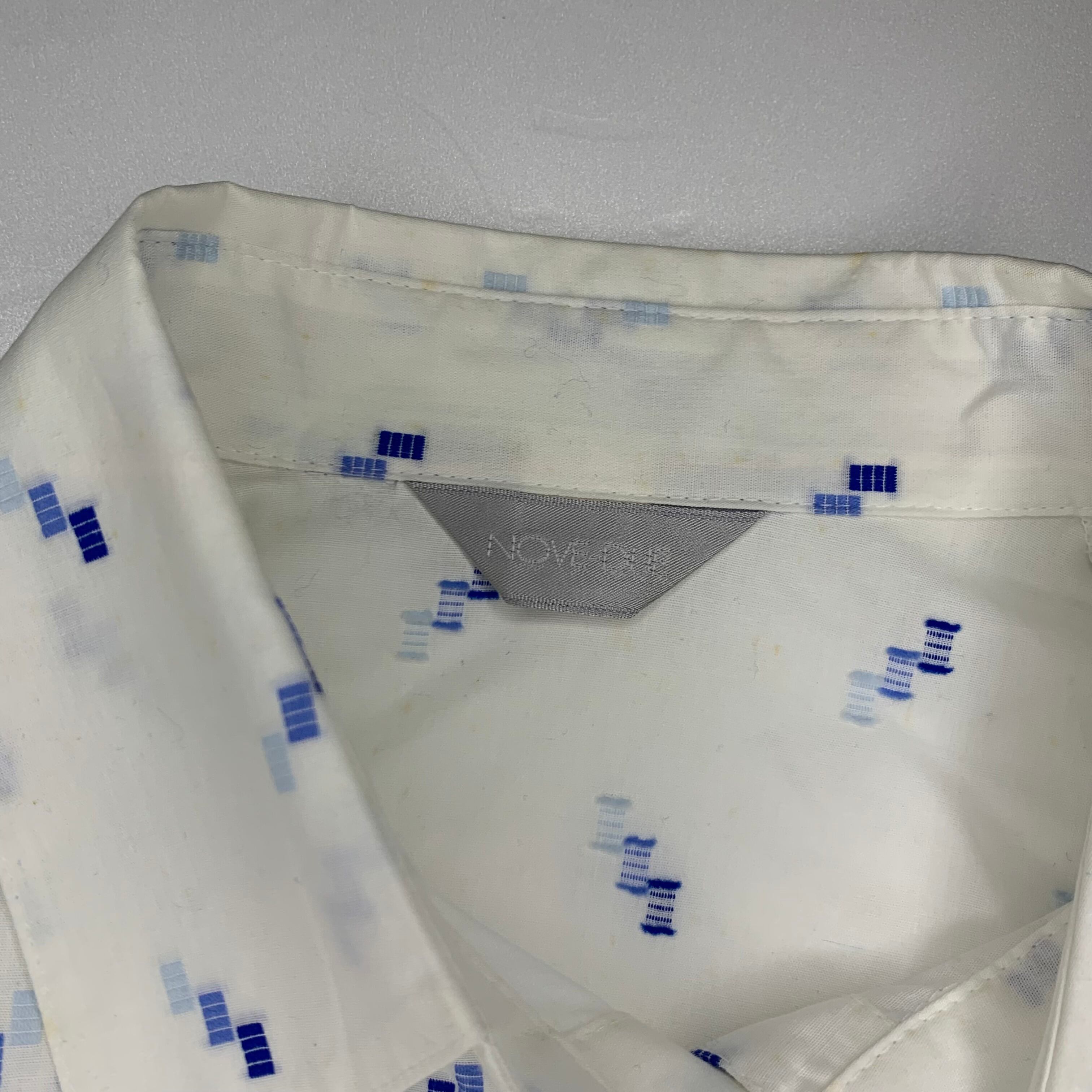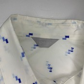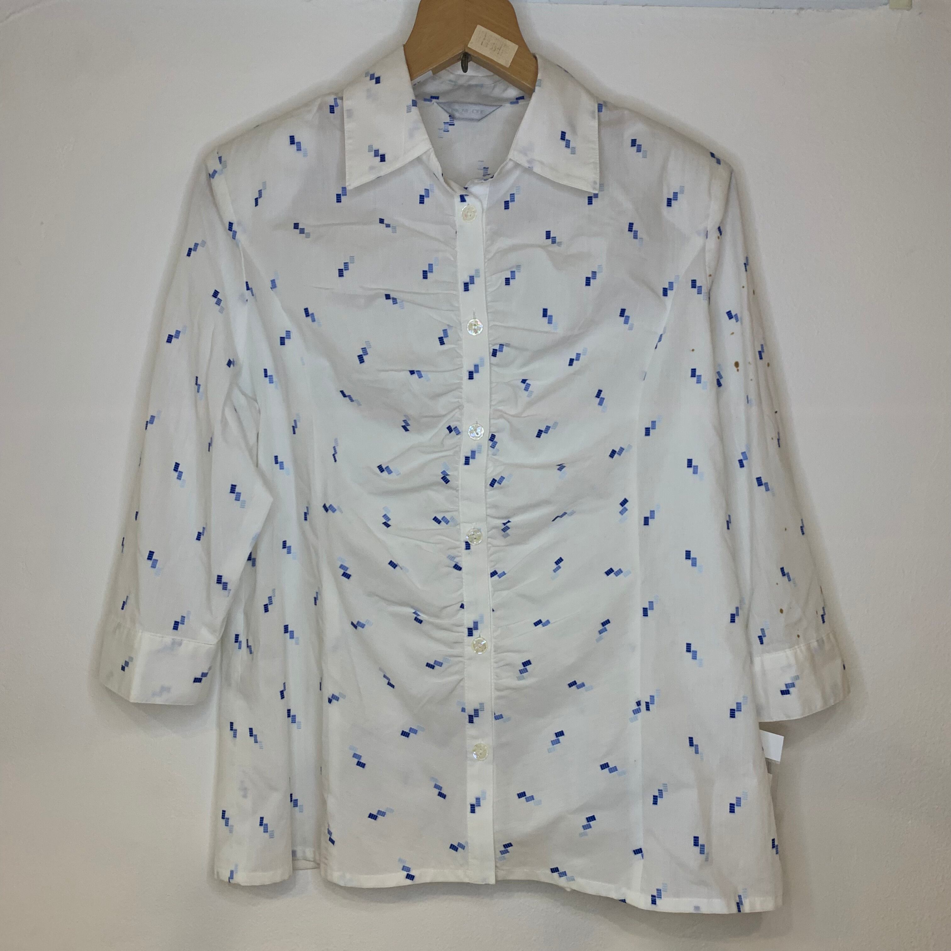【商品概要】 白い生地に青色系の四角いモチーフが散りばめられた、爽やかな印象のブラウスです。