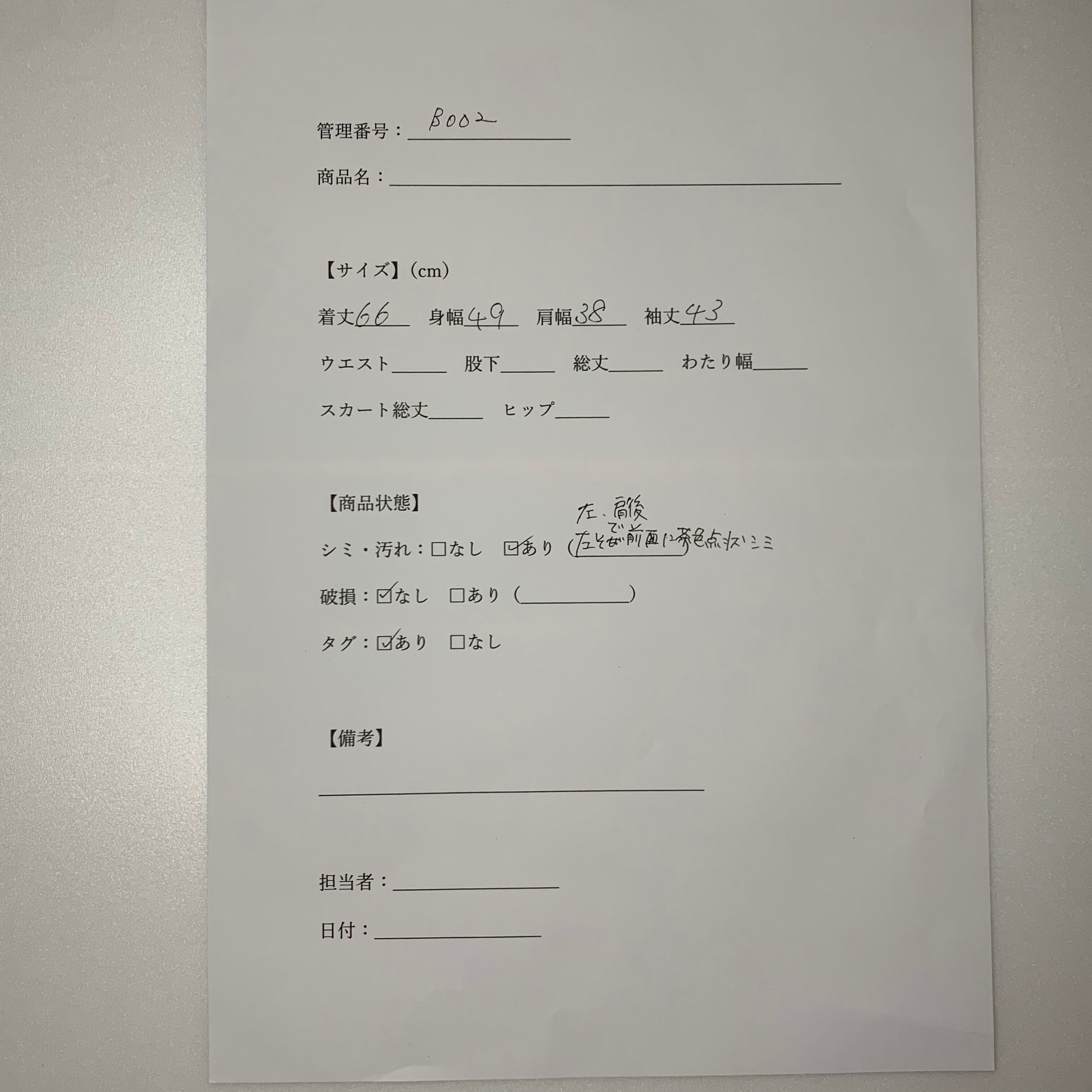 管理番号:B-002 #てまいらずアパレル商品一覧