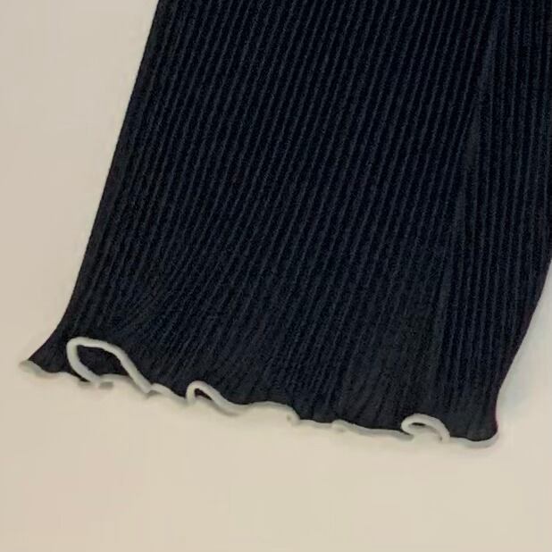 袖口と裾はメロウ加工(フリル状)になっており、シンプルなデザインの中に可愛らしさをプラスしてくれます。 色は着回しやすいブラックで、インナーとしても一枚でも活躍します。