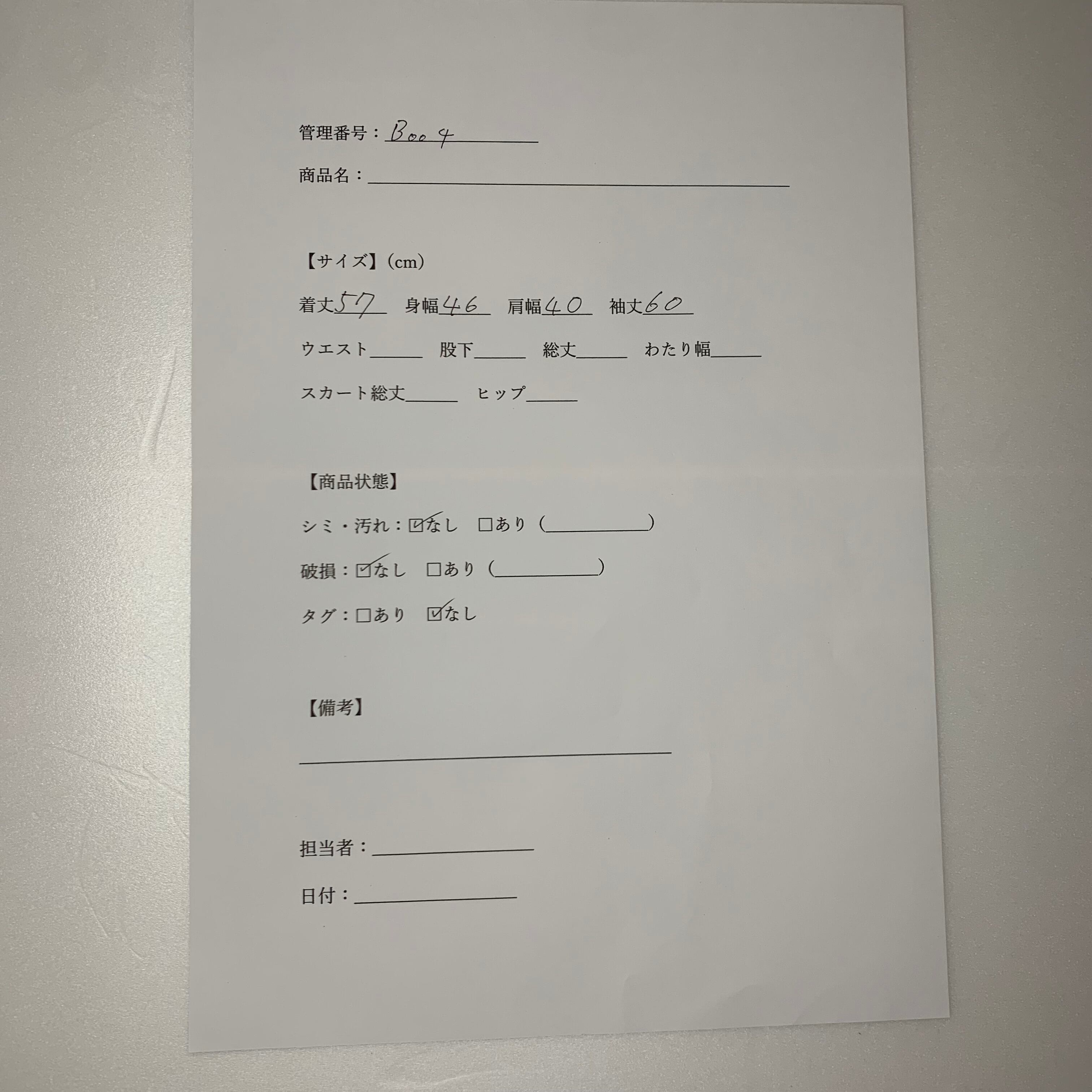 管理番号:B-004 #てまいらずアパレル商品一覧