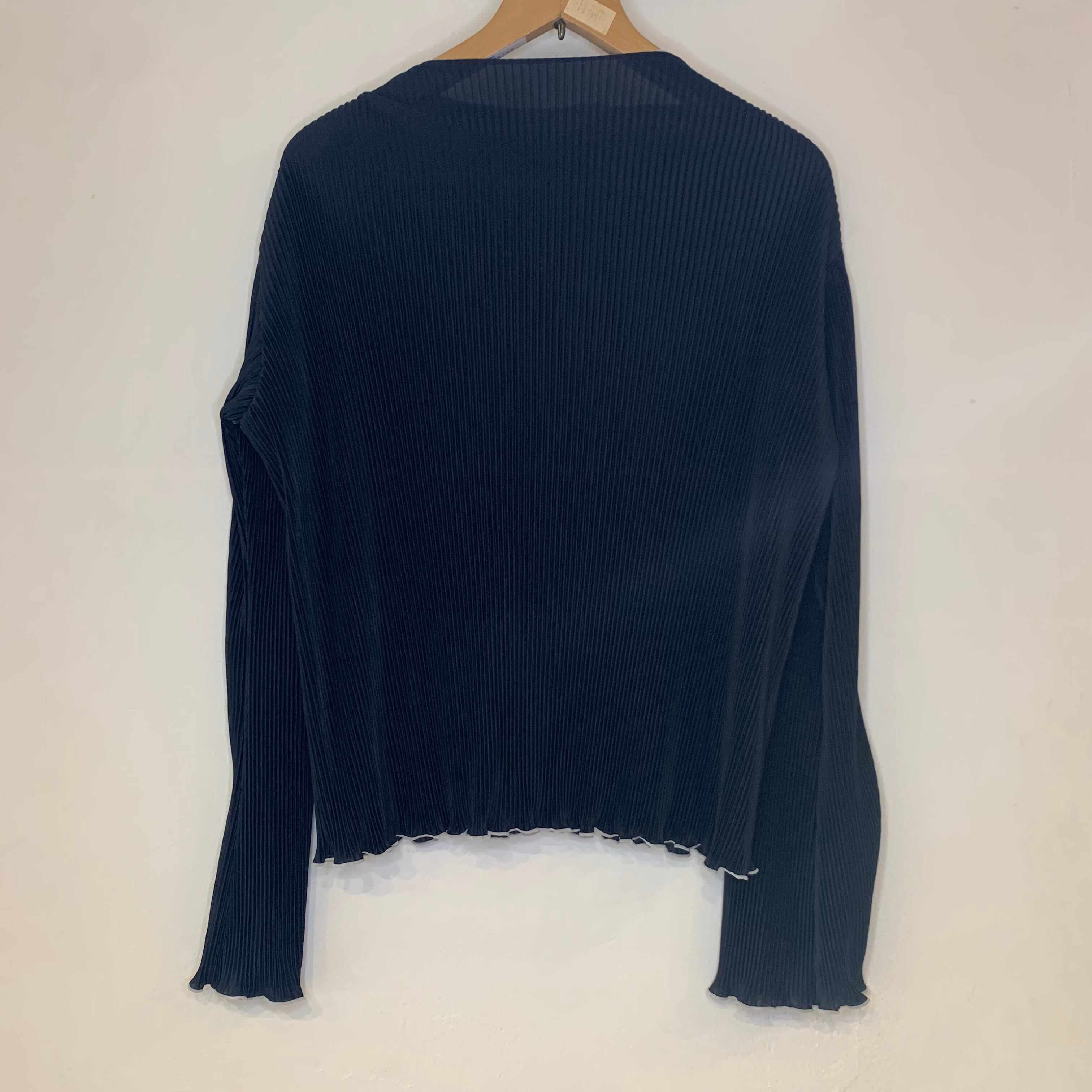 【商品概要】 細かなプリーツ加工が施された、伸縮性のある長袖トップスです。