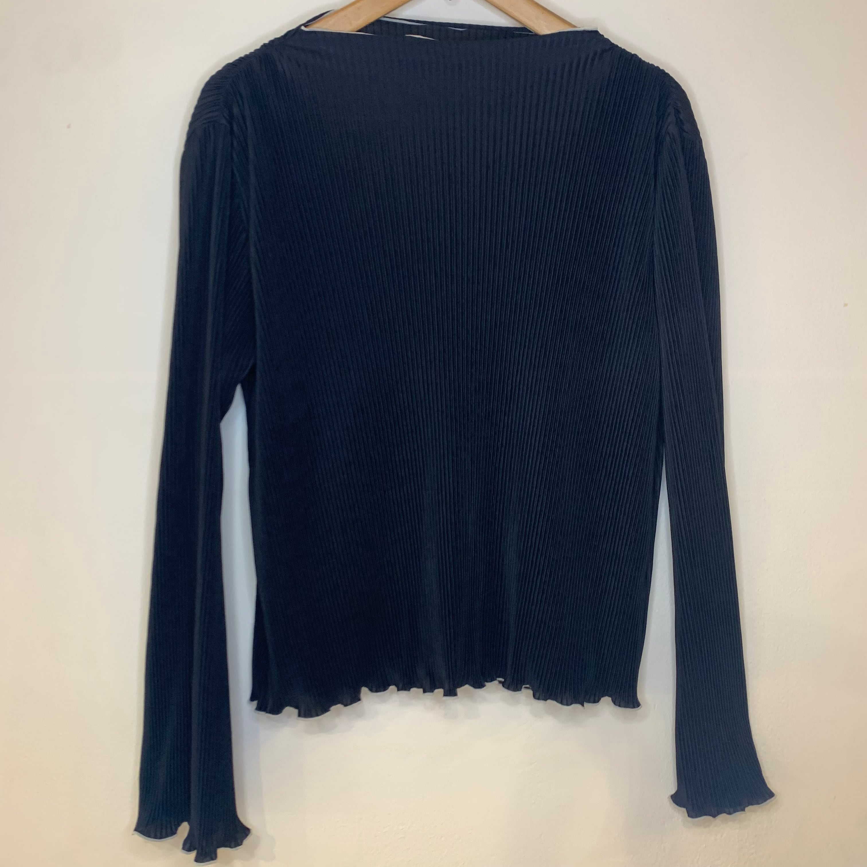 メロウフリル 黒 プリーツ トップス 長袖 カットソー