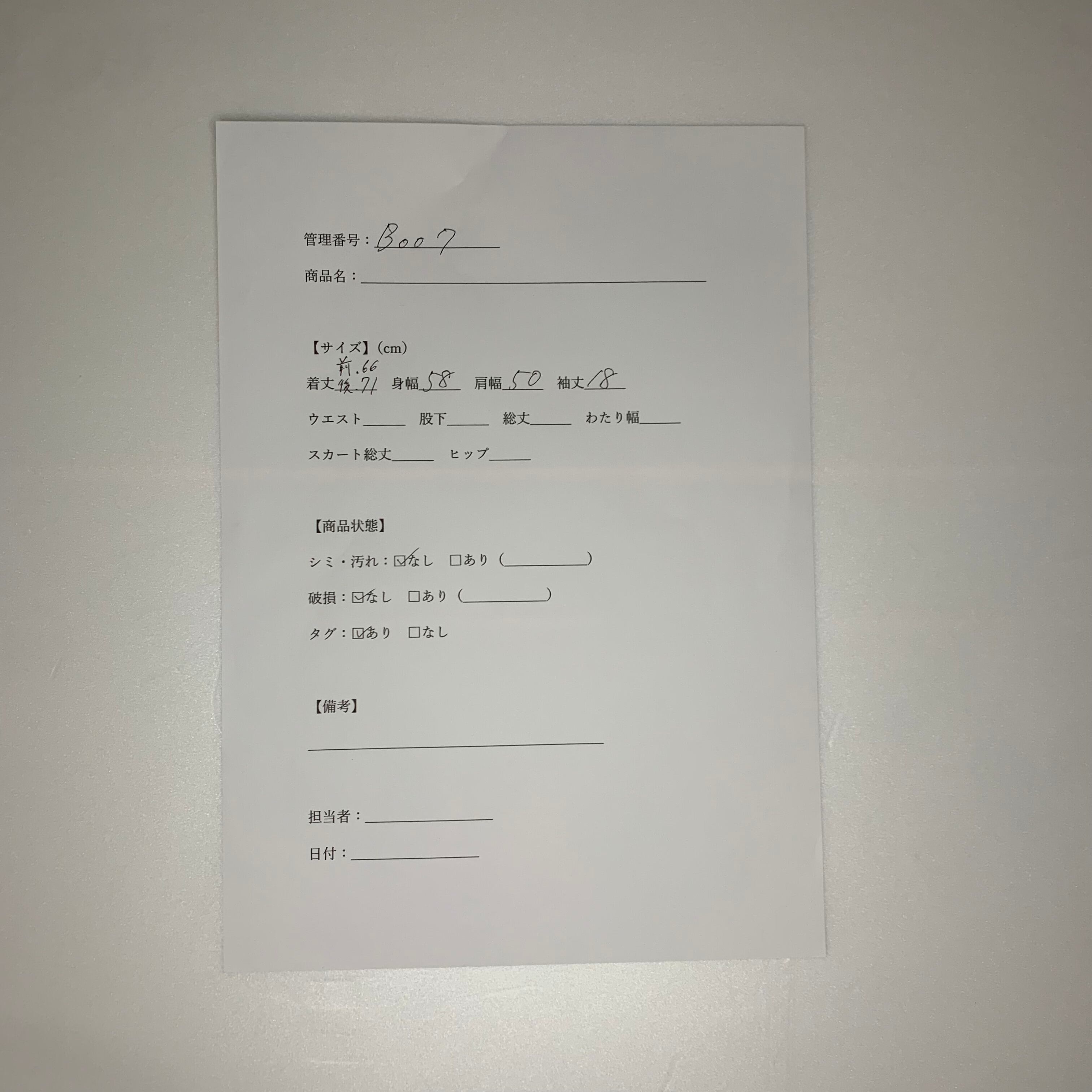 管理番号:B-007 #てまいらずアパレル商品一覧
