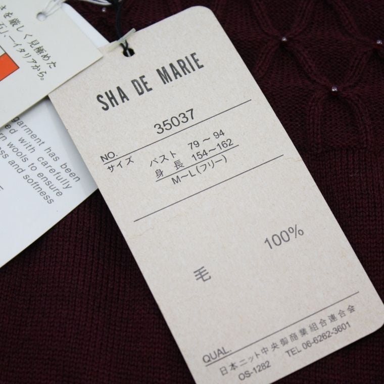 SHA DE MARIE ハイネックニット M~L メリノウール 肩パッド付き レディース