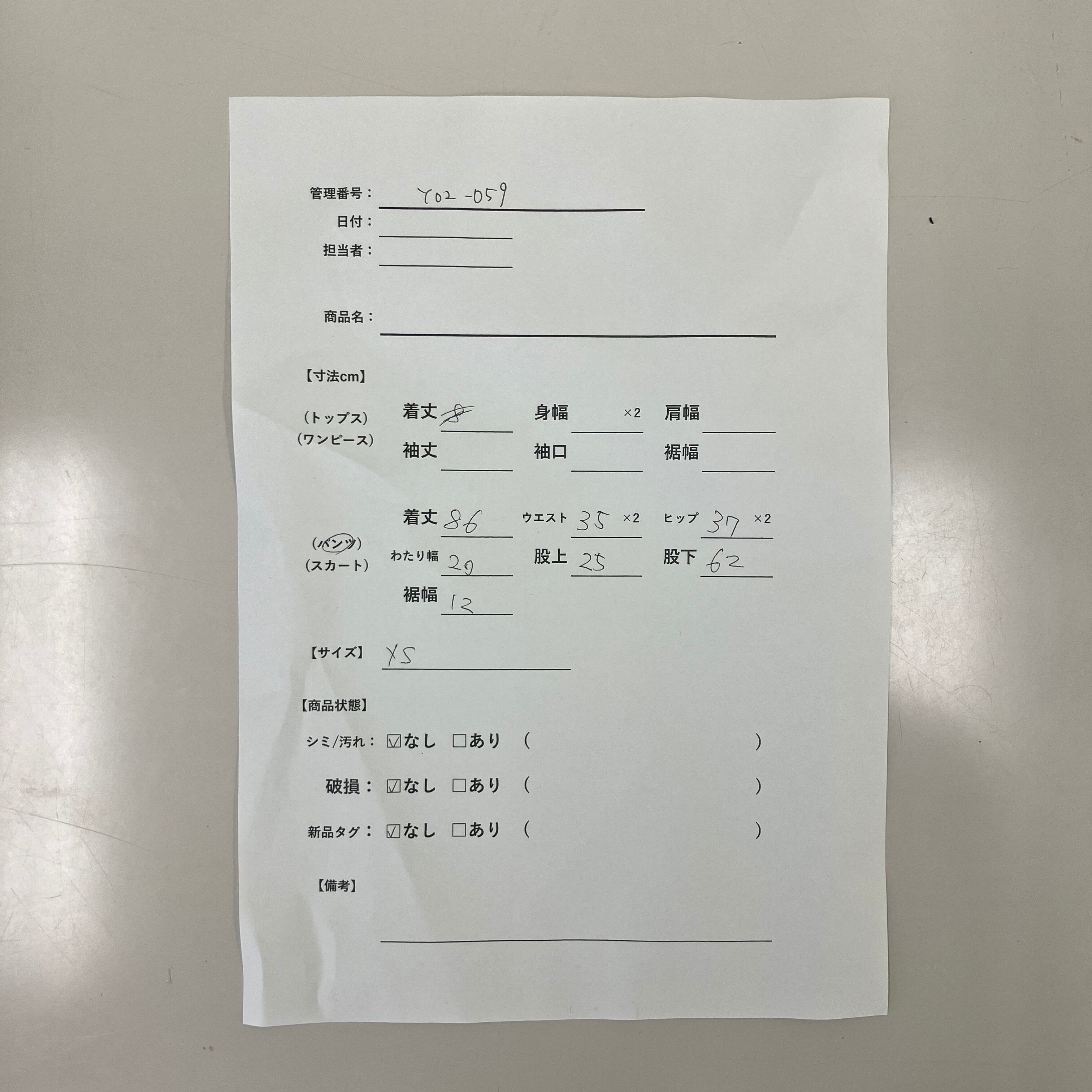 管理番号:Y02-059 #てまいらずアパレル商品一覧