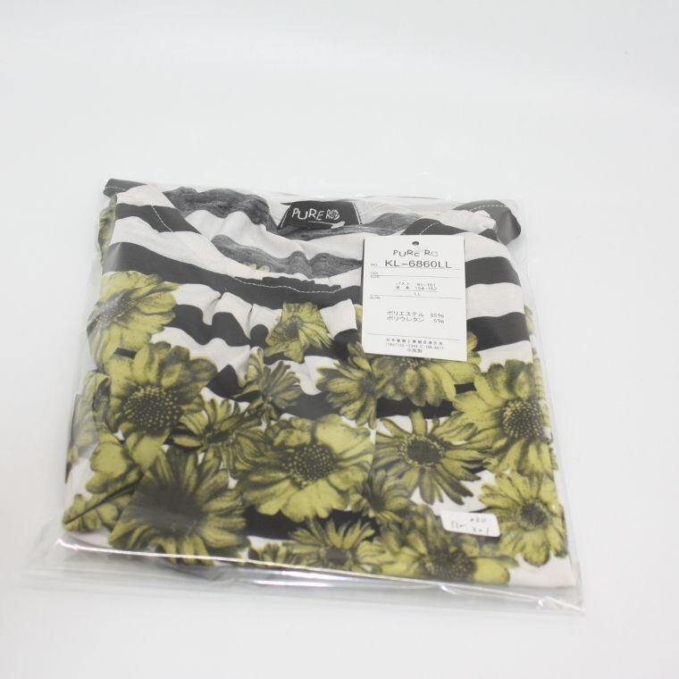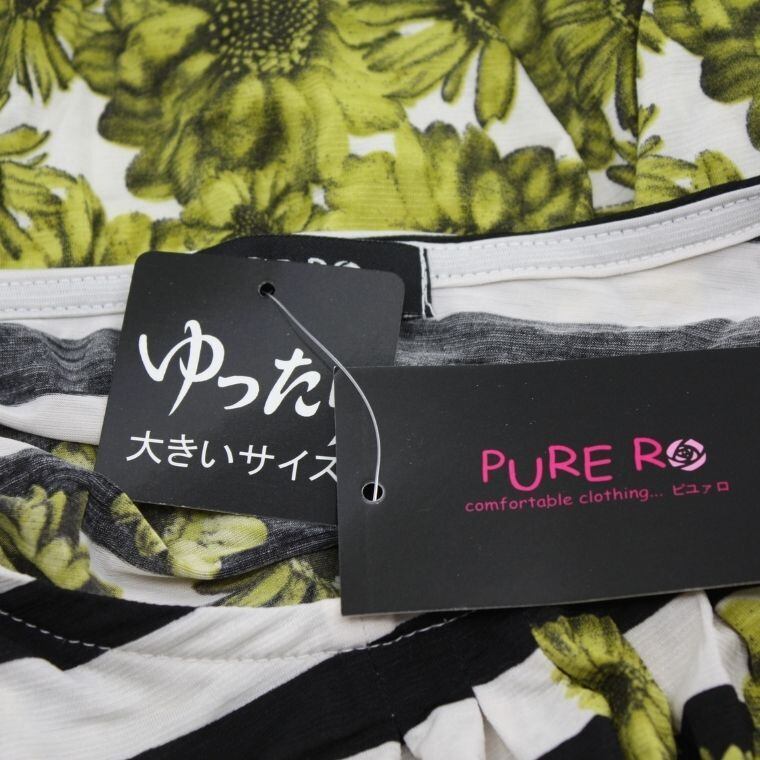 PURE R 花柄×ボーダー 切替ワンピース チュニック LL 新品タグ付き 体型カバー