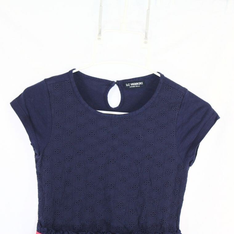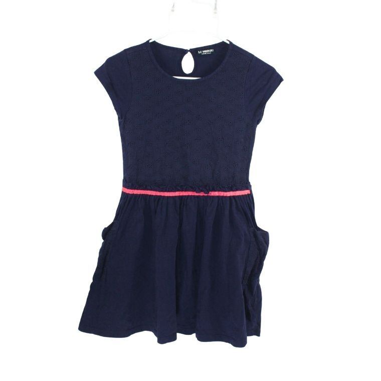 LC Waikiki キッズ ワンピース 8-9歳 128-134cm ネイビー 半袖 ポケット付き 綿100