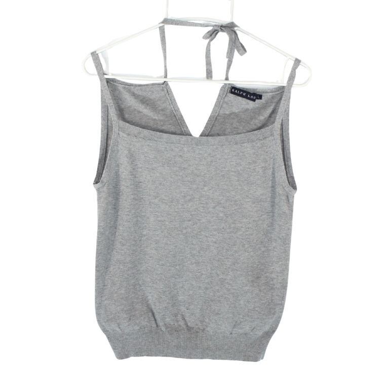 ラルフローレン ニットキャミソール グレー 綿100% ホルターネック レディース Lサイズ