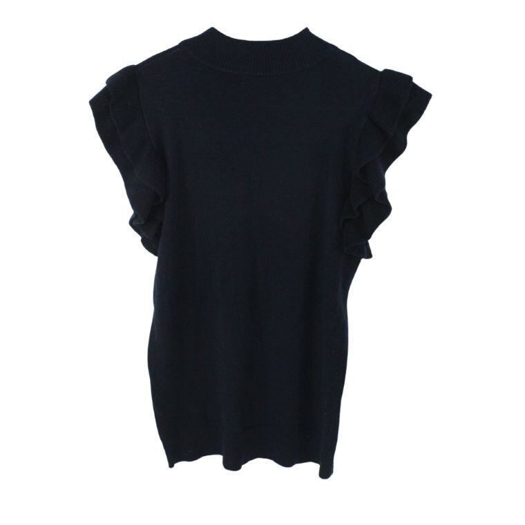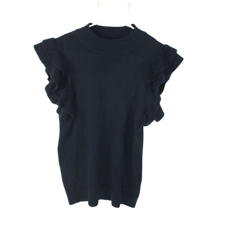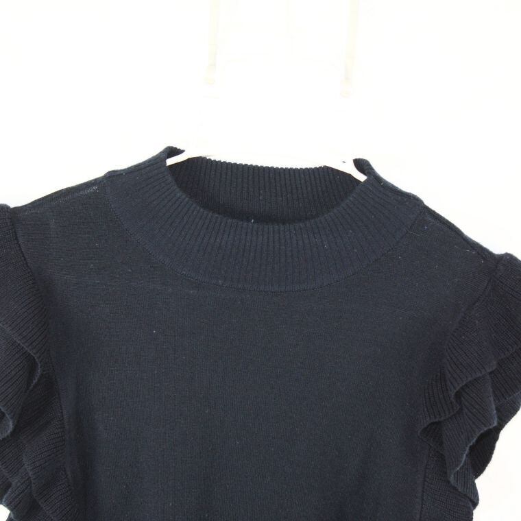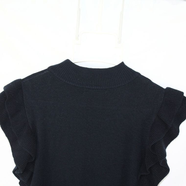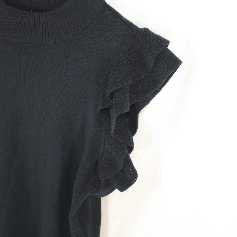 JEAN FELDINAND フリルスリーブ ニットトップス ブラック L レディース