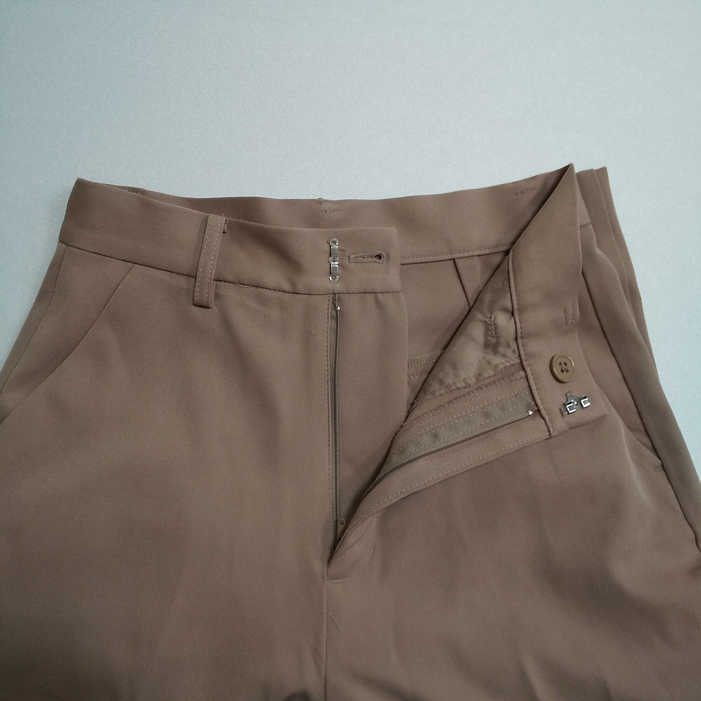 GRL センタープレス ワイドストレートパンツ 茶 S 春秋