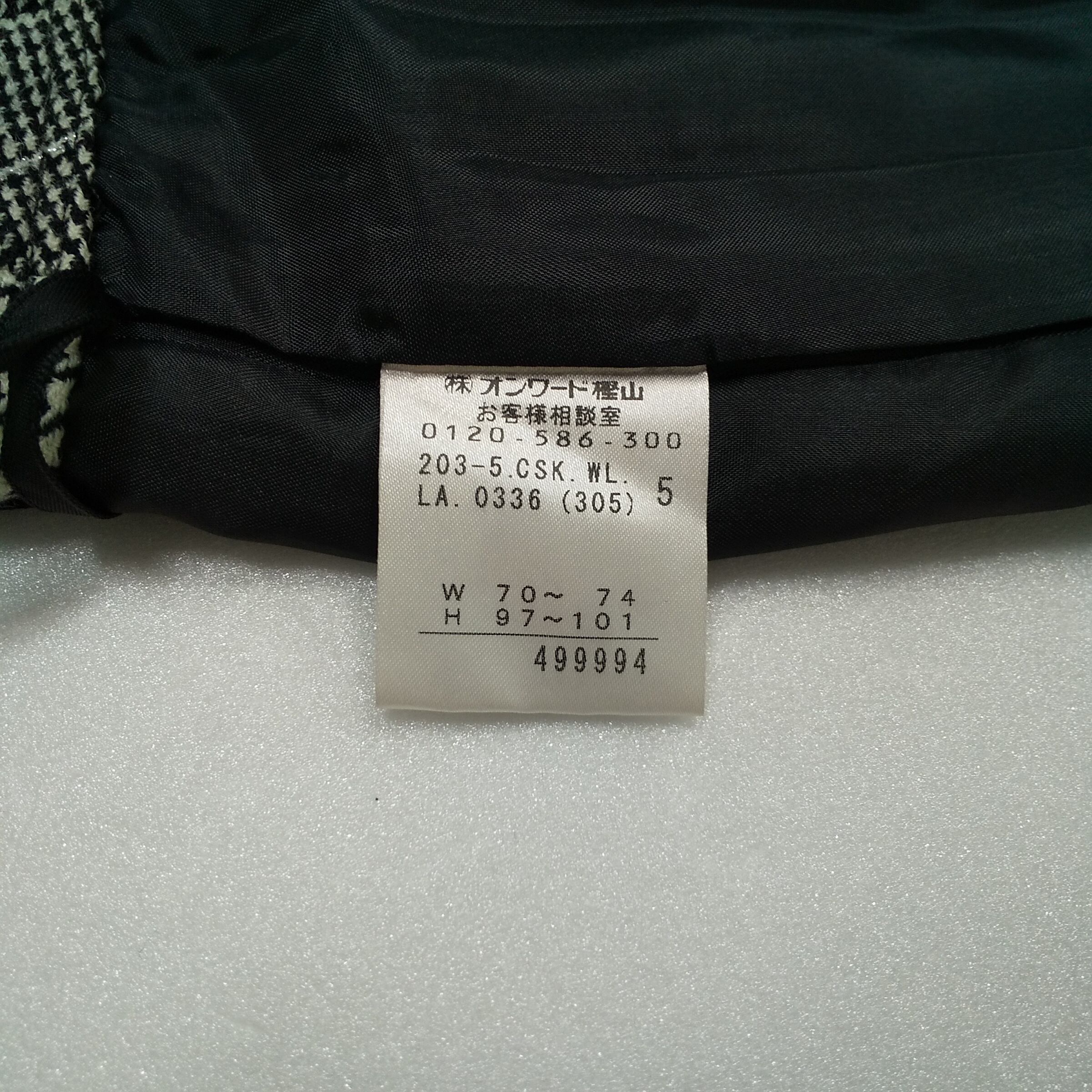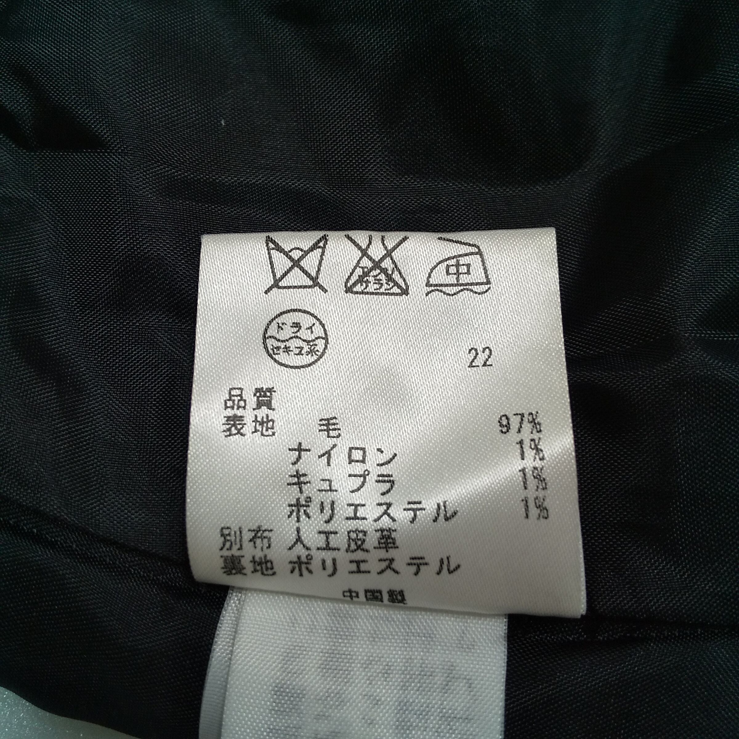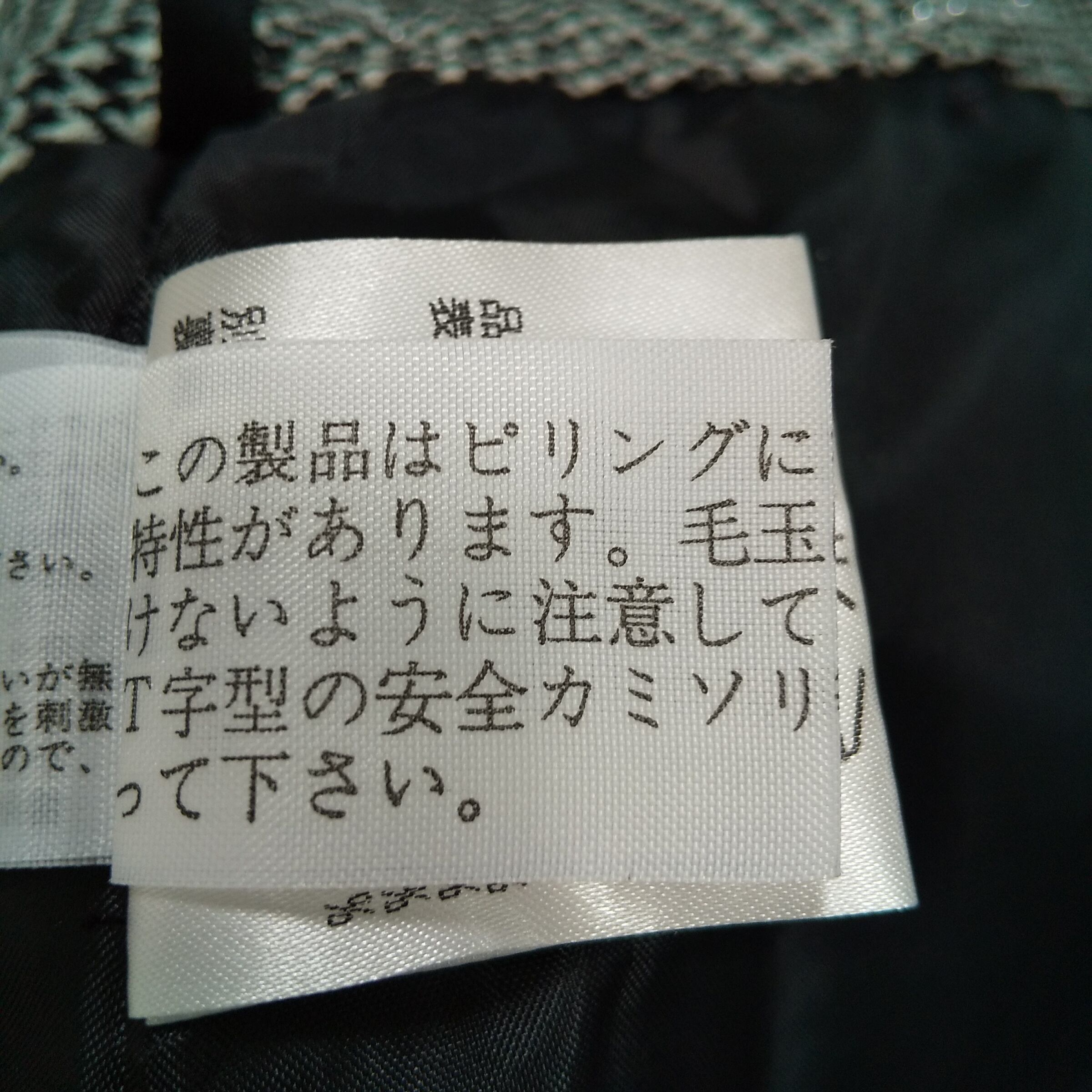 裏地の品質表示タグが切れております。