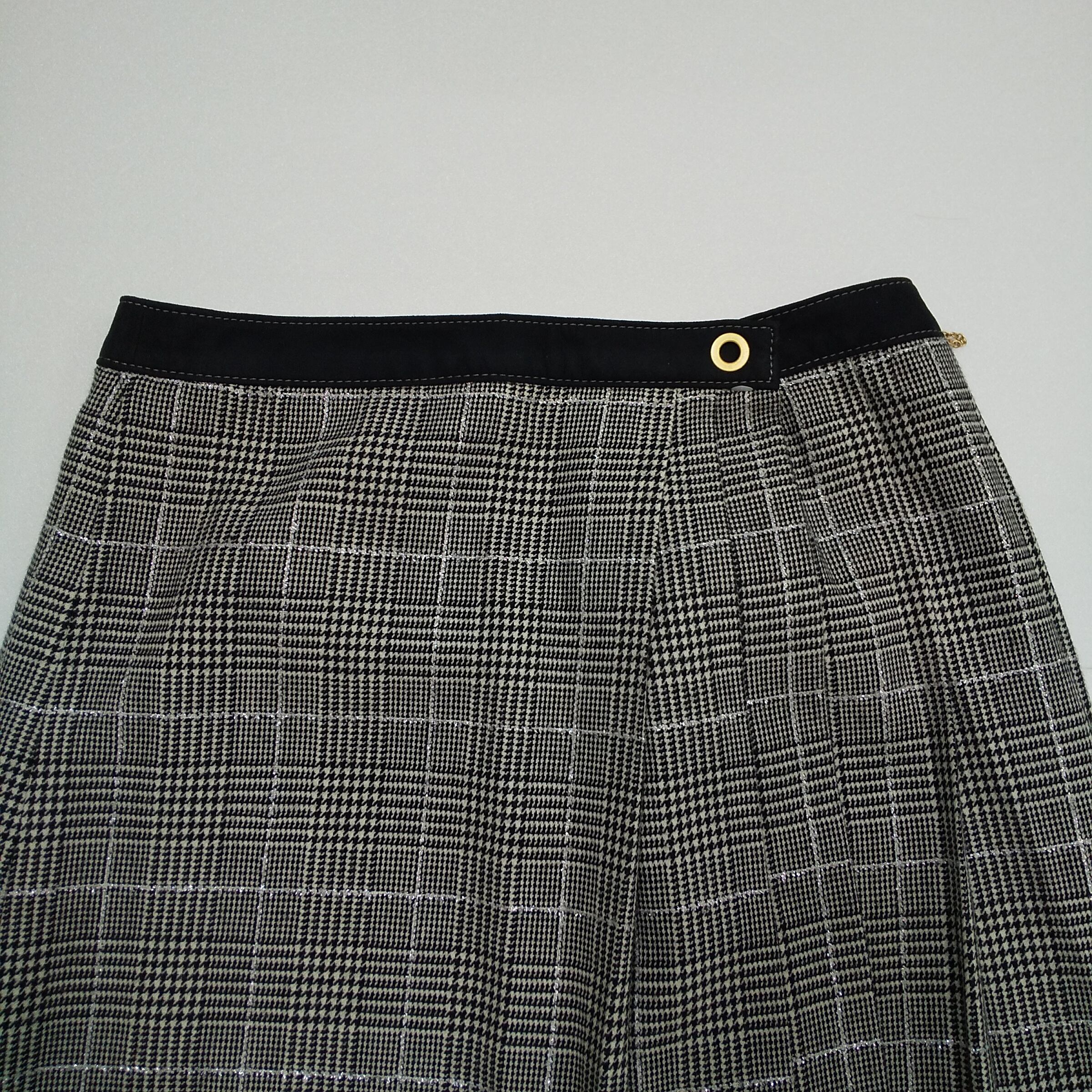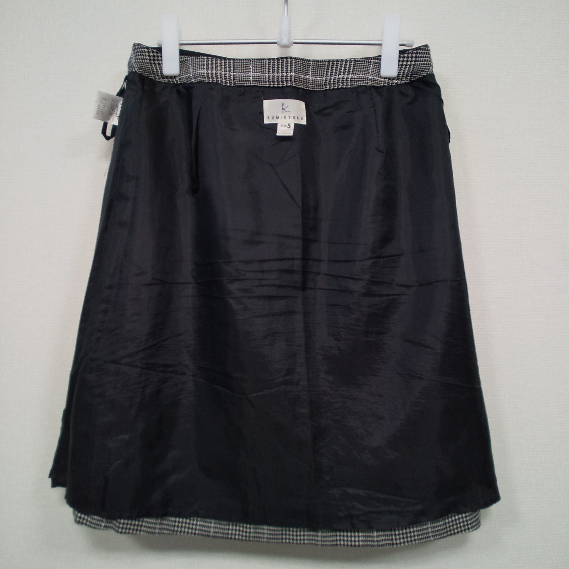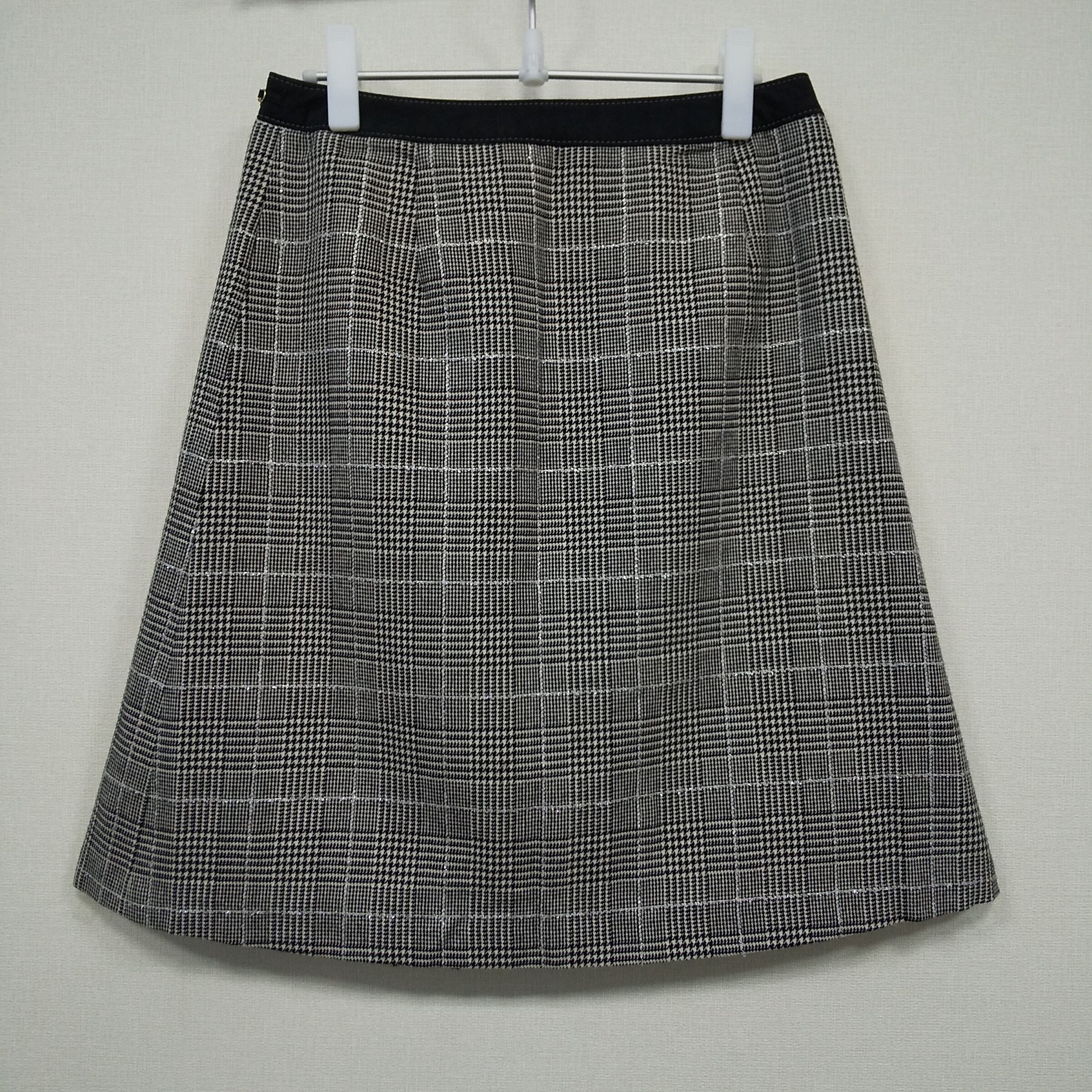 kumikyoku グレンチェック フレアスカート 5号 グレー 切替デザイン ゴールドハトメ