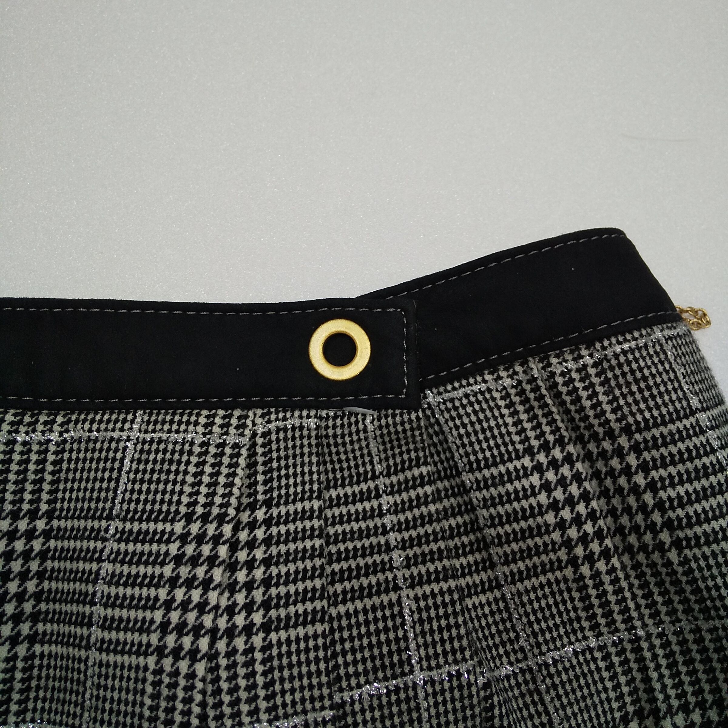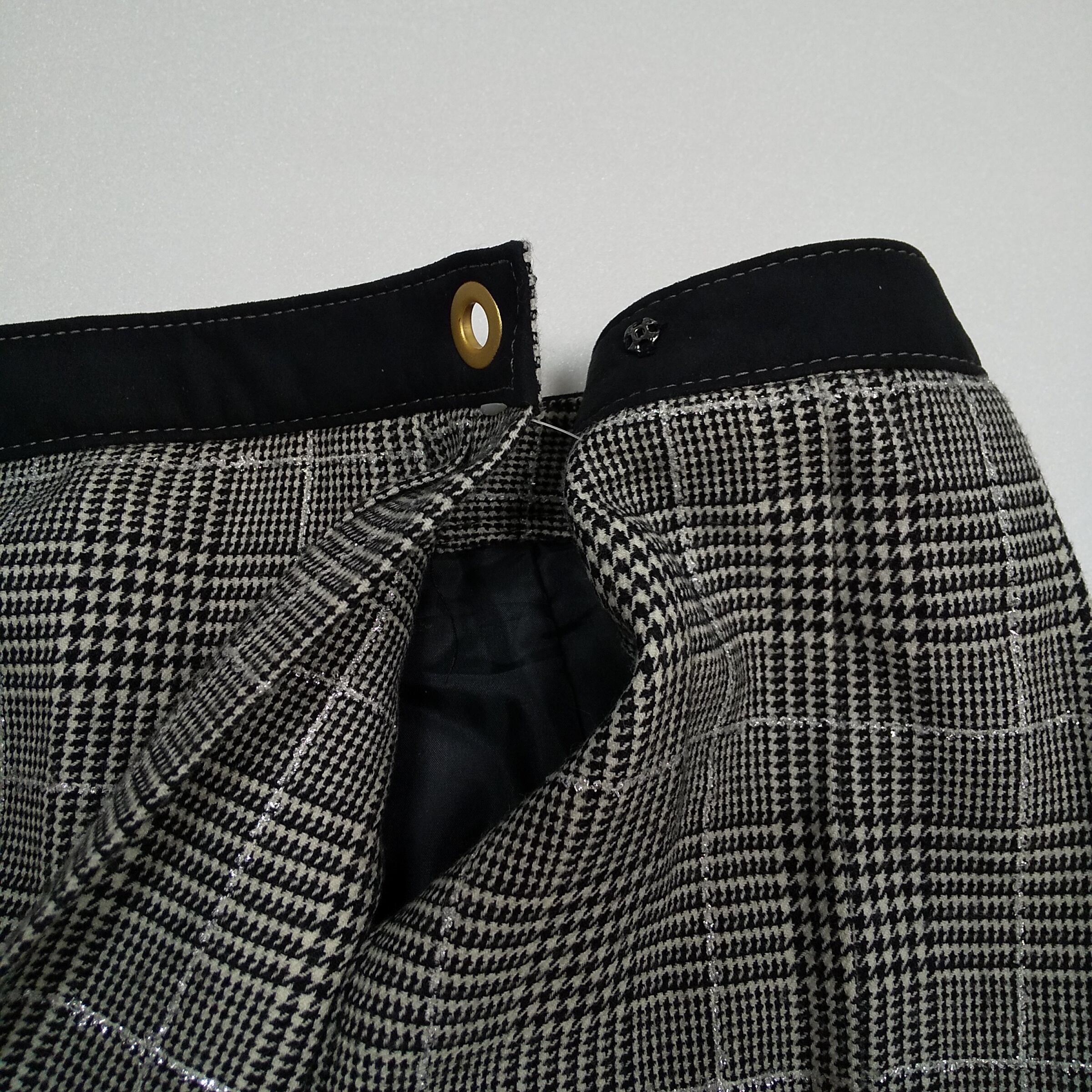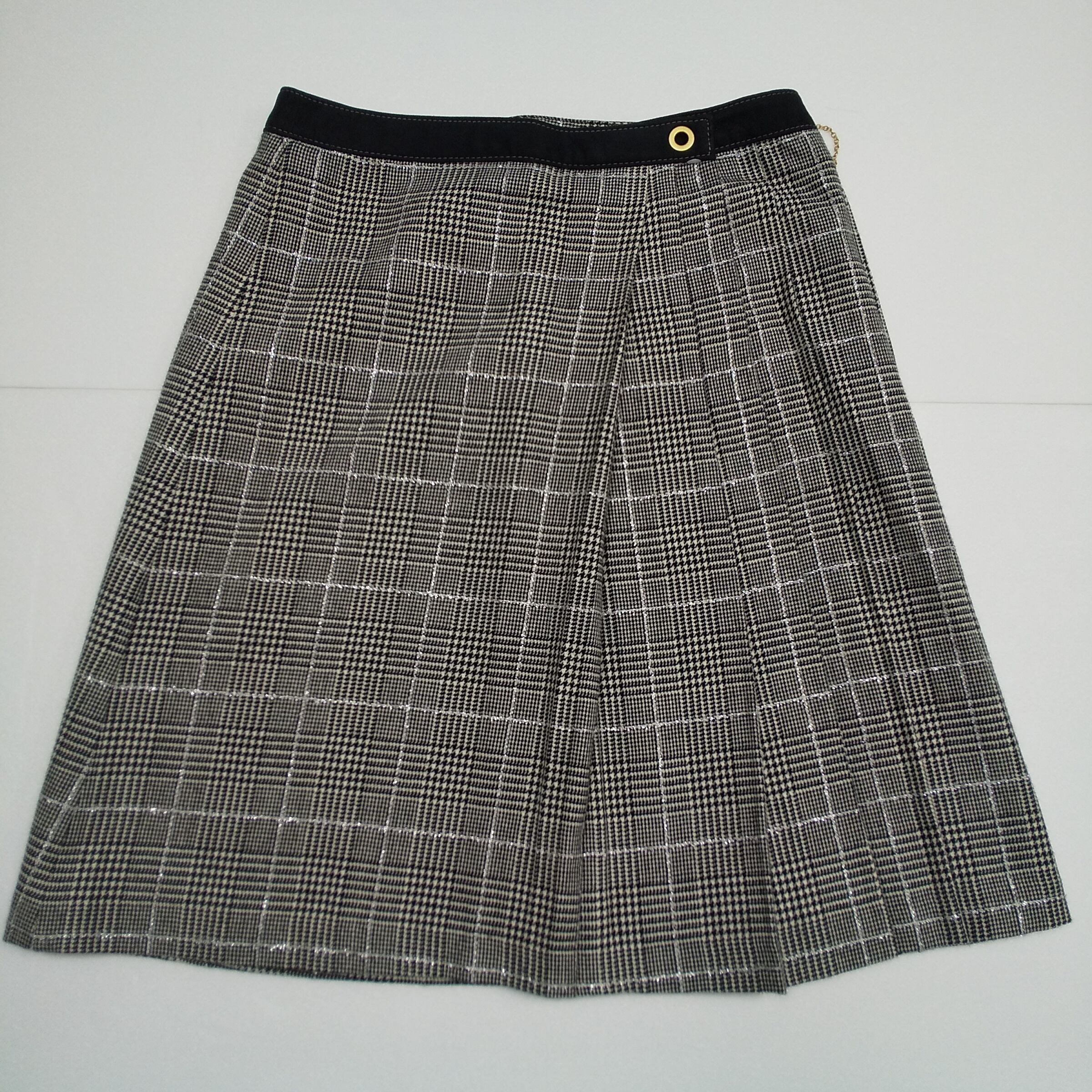 kumikyoku グレンチェック フレアスカート 5号 グレー 切替デザイン ゴールドハトメ