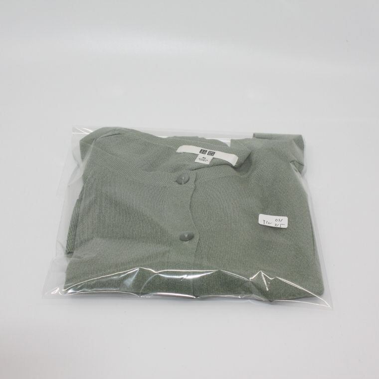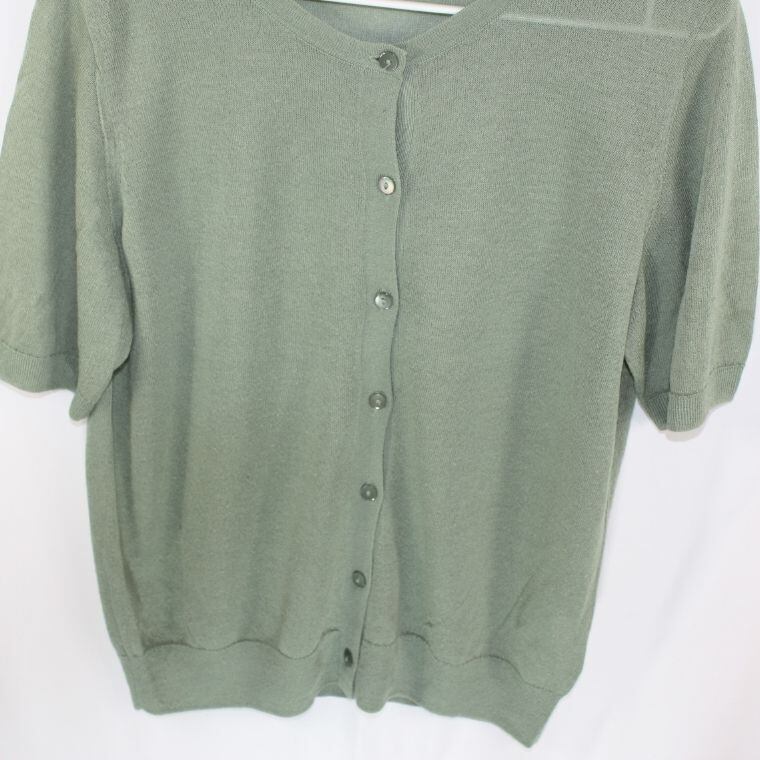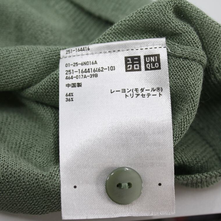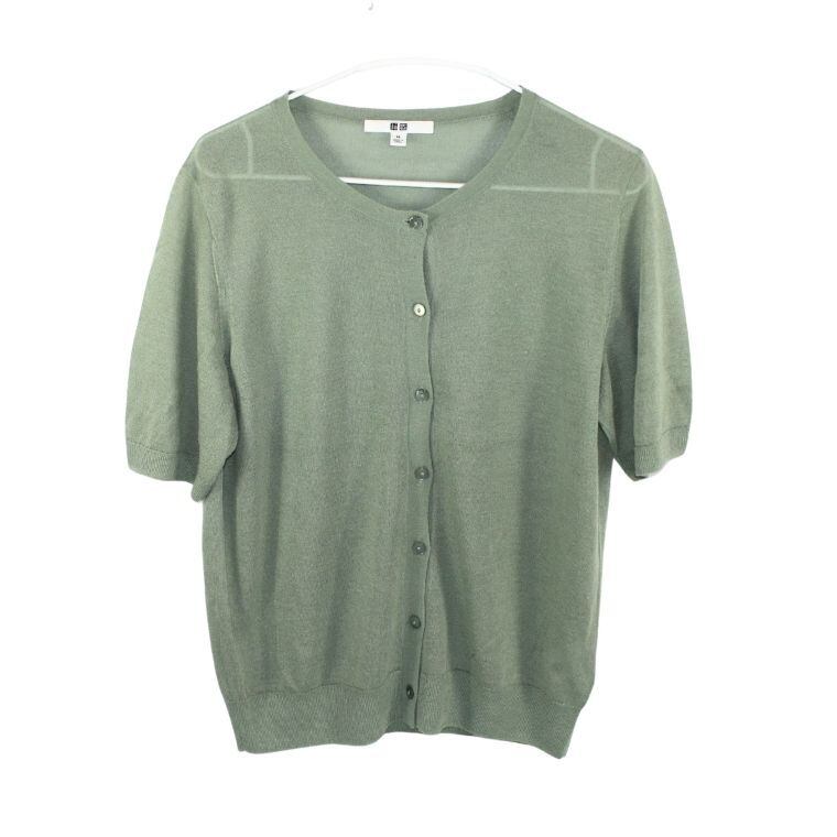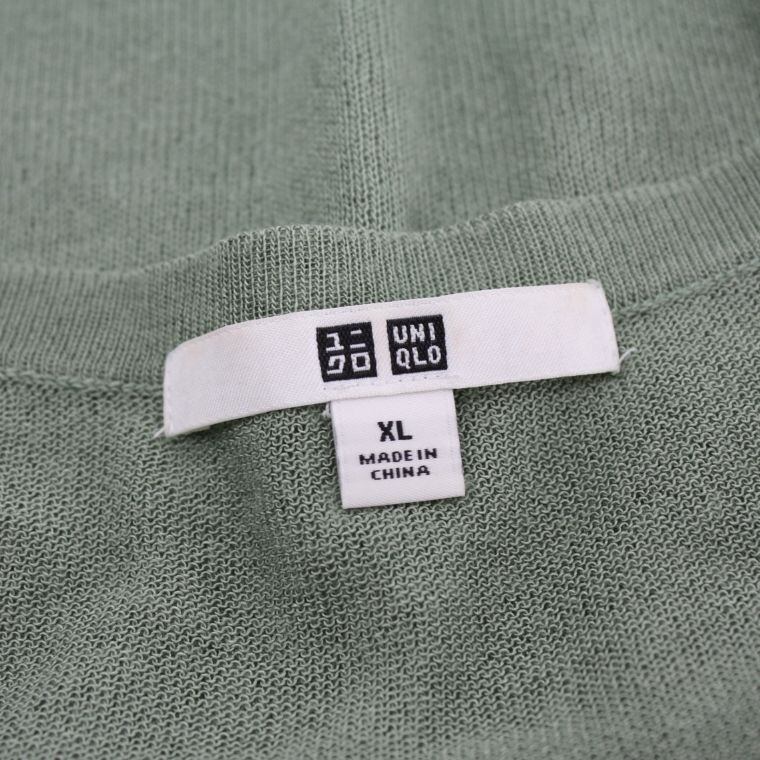 UNIQLO 半袖カーディガン XL グリーン レーヨン混 クルーネック