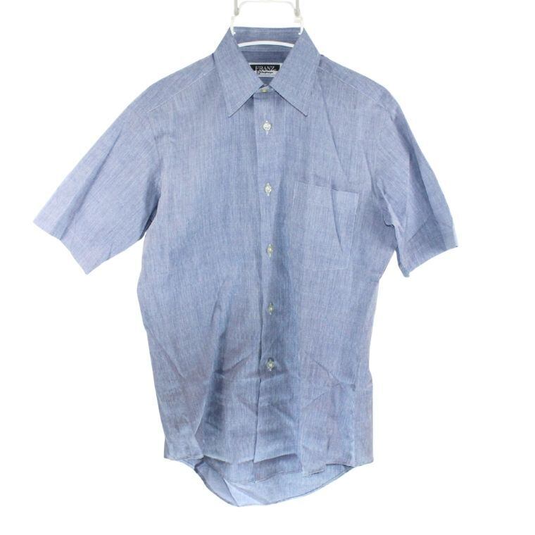 FRANZ Chugitsuya 半袖シャツ ブルー 無地 シンプル コットン メンズM相当