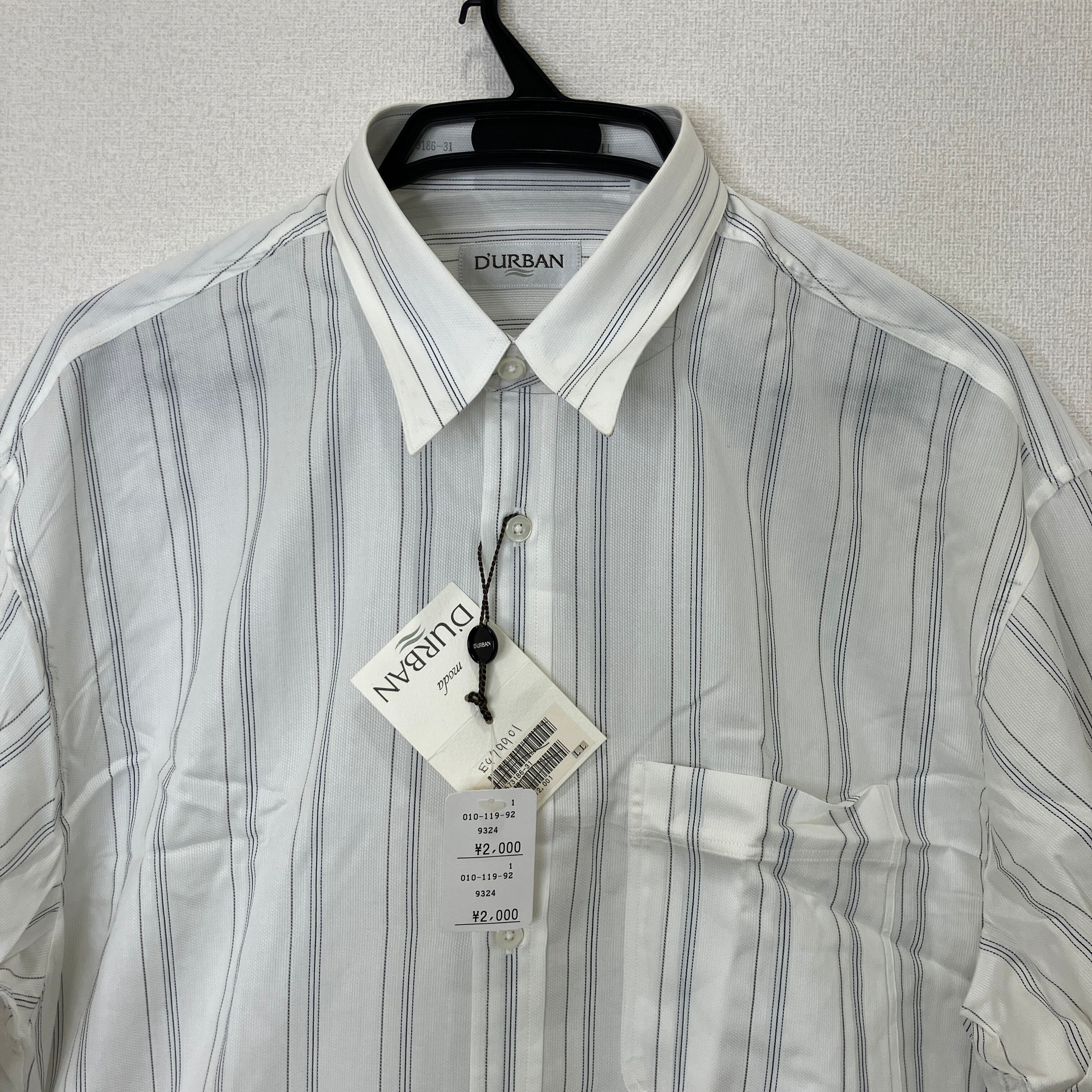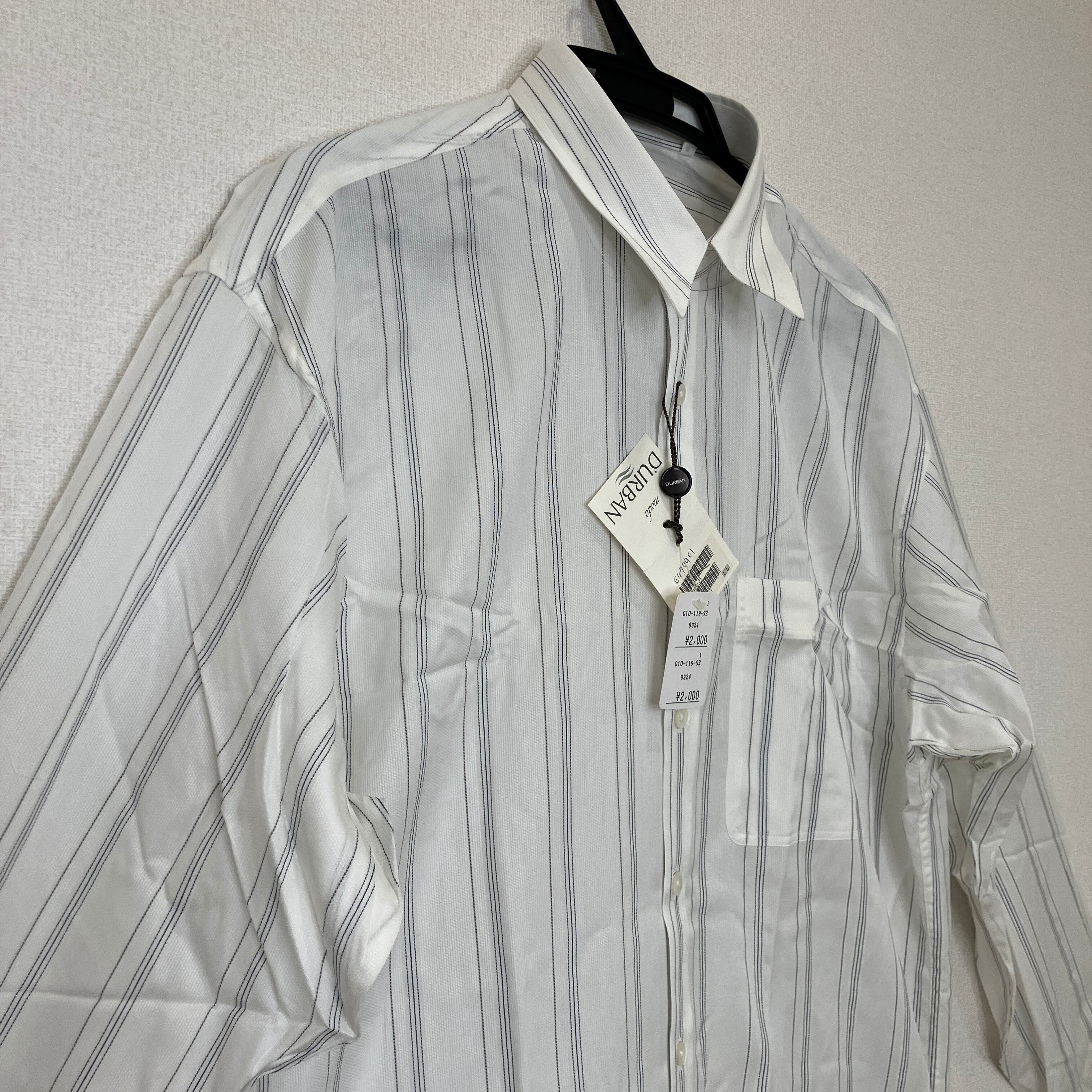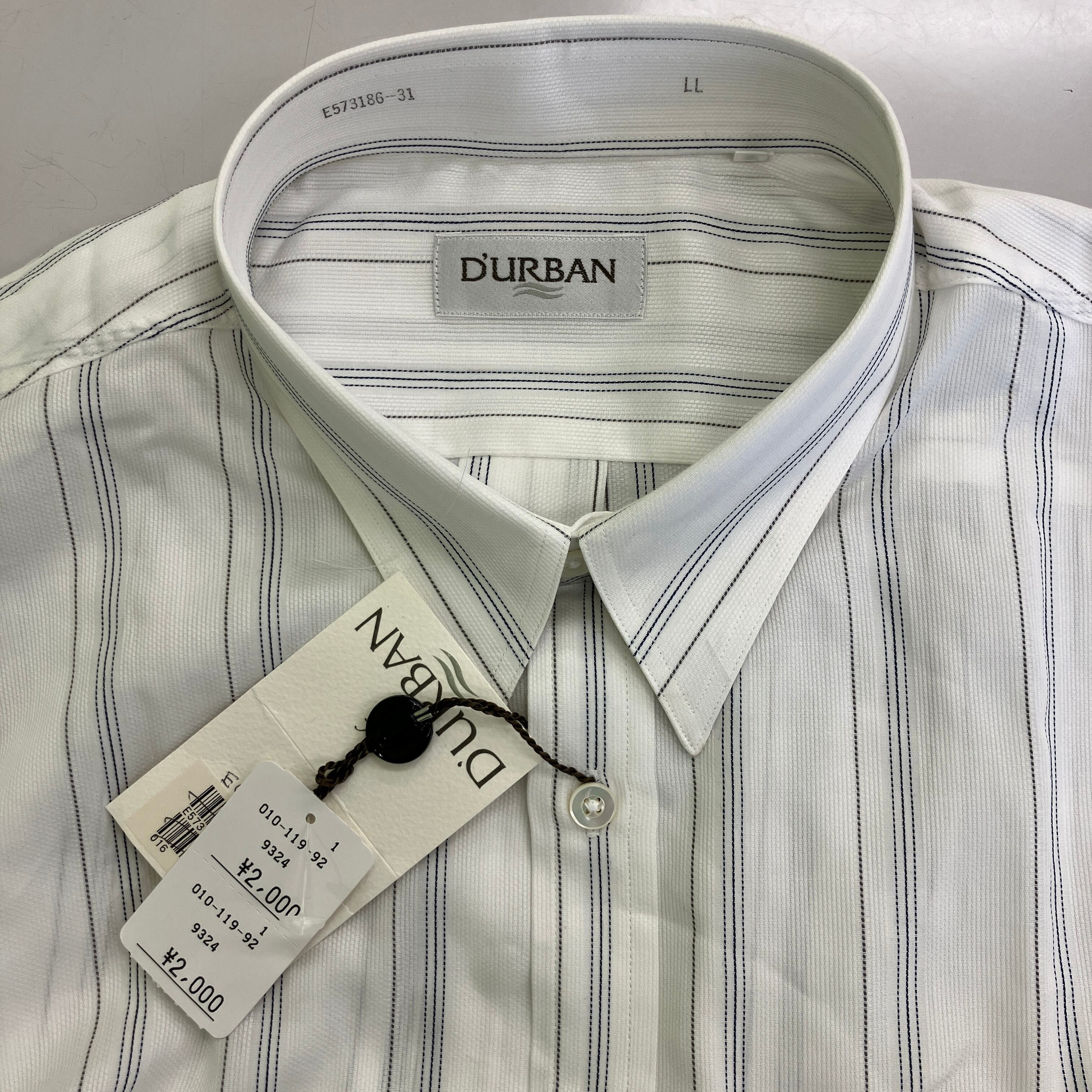 D'URBAN(ダーバン)メンズ 長袖 ストライプシャツ ホワイト LLサイズ タグ付き