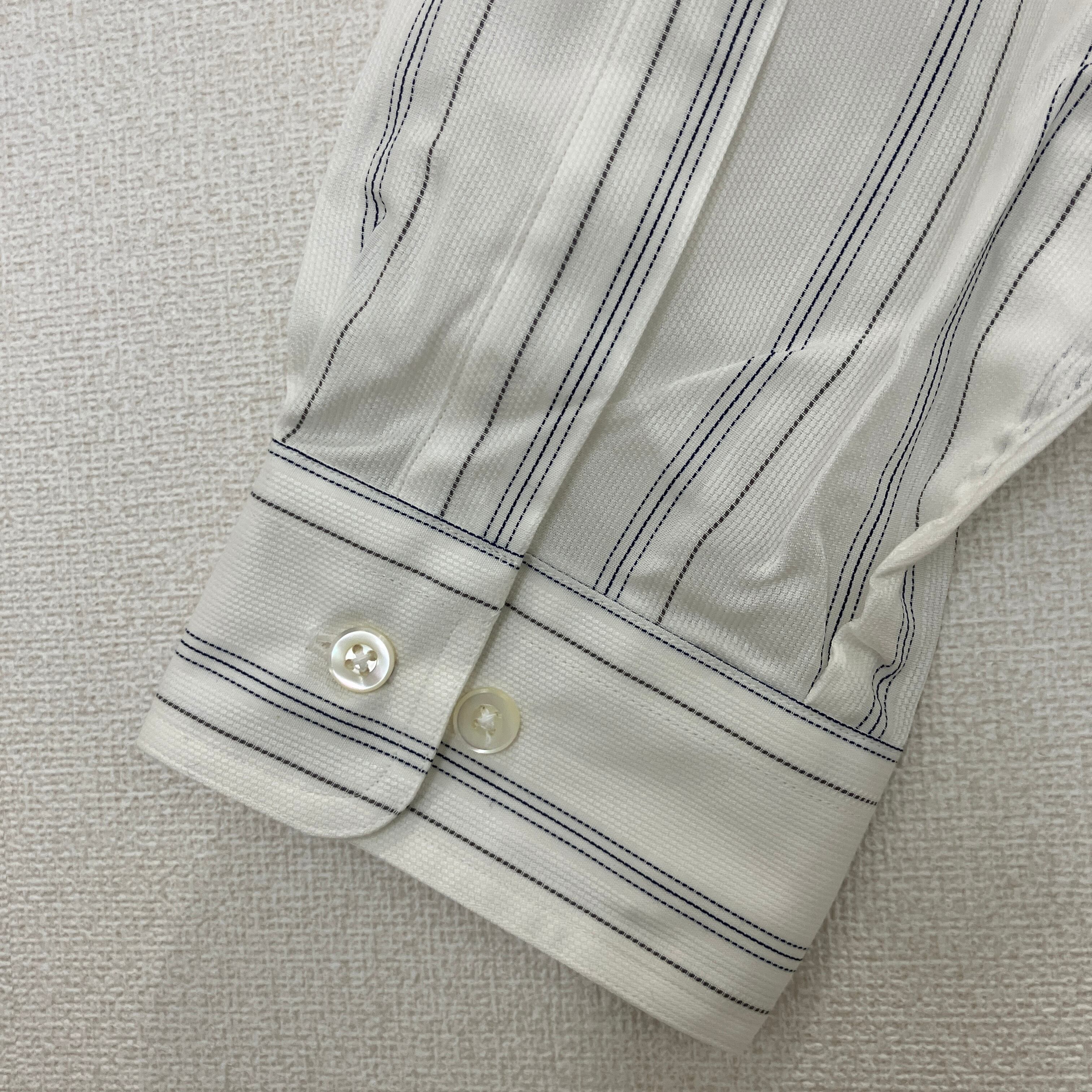 清潔感のあるホワイトをベースに落ち着いたストライプ柄が入っており、ビジネスからカジュアルまで幅広くお使いいただけます。